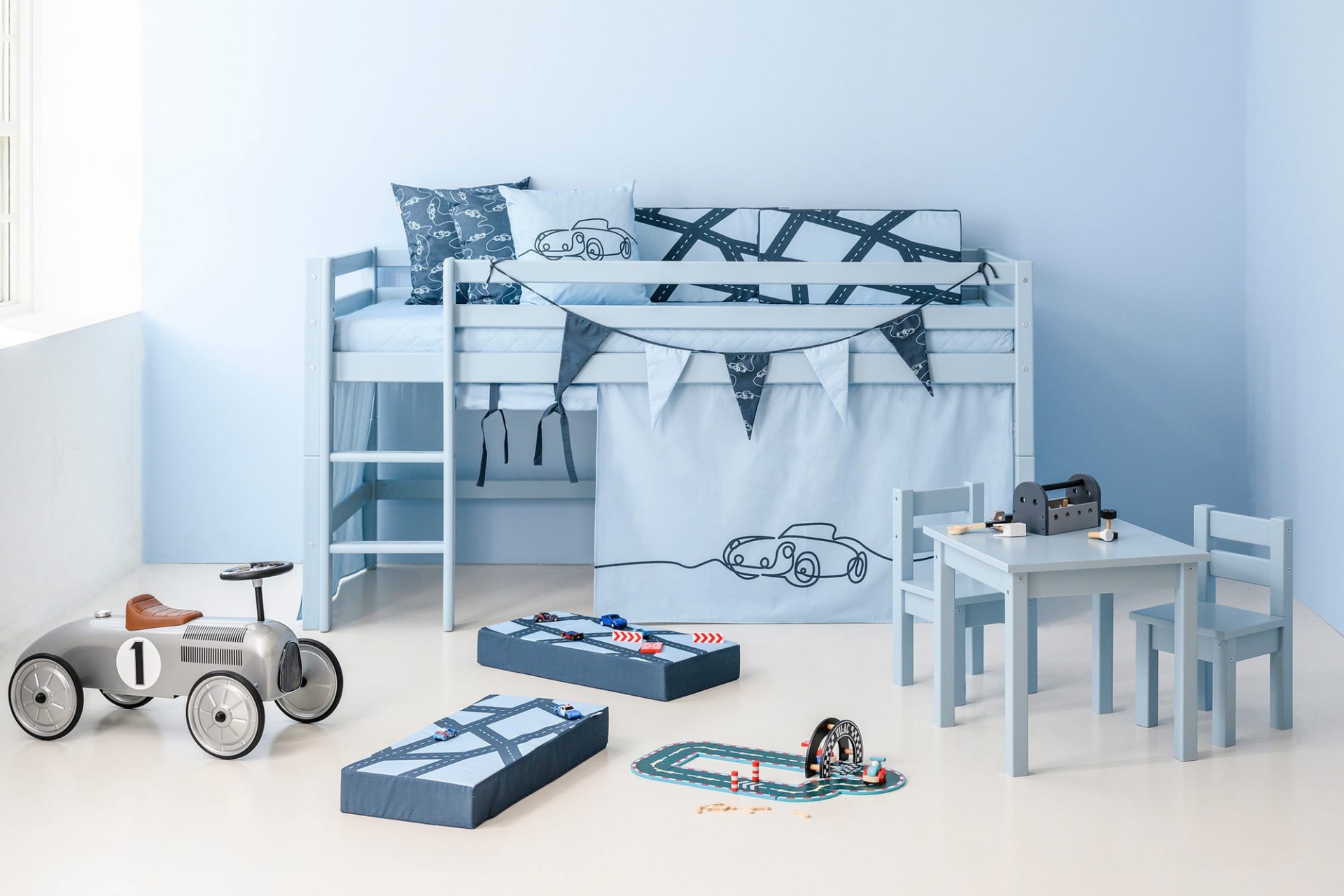 O elegante tom Azul-Sonho cria um bonito efeito degradê, enquanto a estampa contínua de carros chama imediatamente a atenção de qualquer pequeno apaixonado por automóveis. A coleção Carro foi pensada para quem gosta de design simples e subtil, sem abdicar de detalhes divertidos e cheios de personalidade.