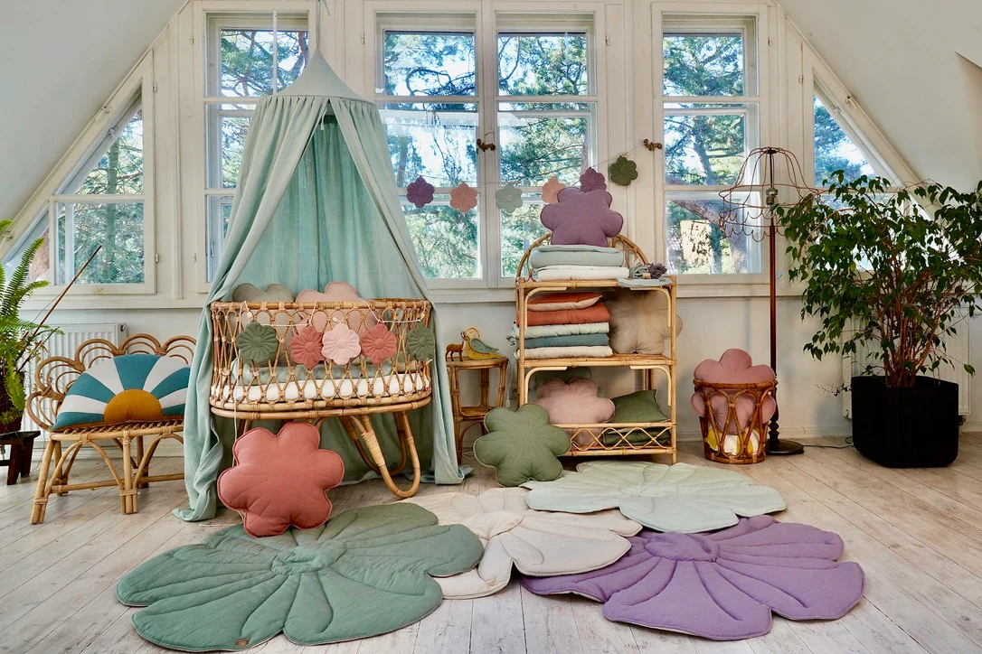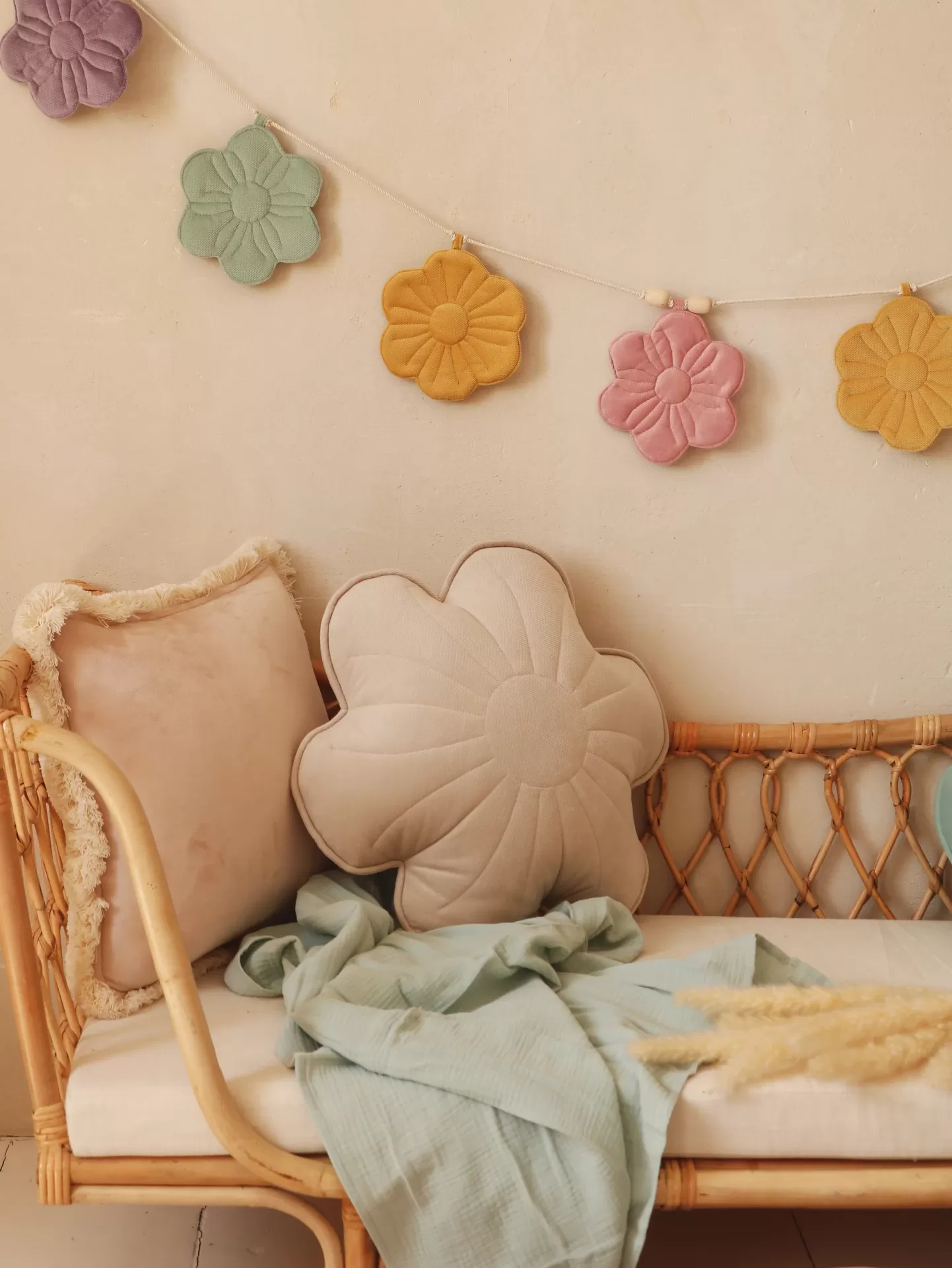 Acordar e brincar rodeado de flores é mágico e com a Almofada FLOR em veludo, da coleção primavera da Marangga Kids, essa magia entra pela porta da sua casa!