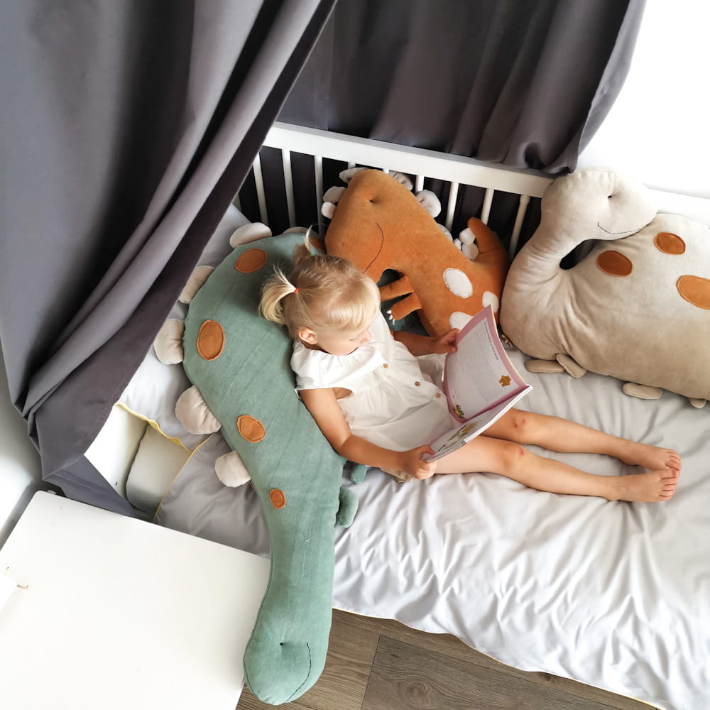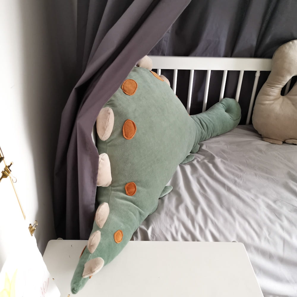 Em forma de DINOSSAURO, esta almofada apreciada por todas as crianças, vai trazer muita alegria aos seus pequenos e vai decorar lindamente o ambiente.