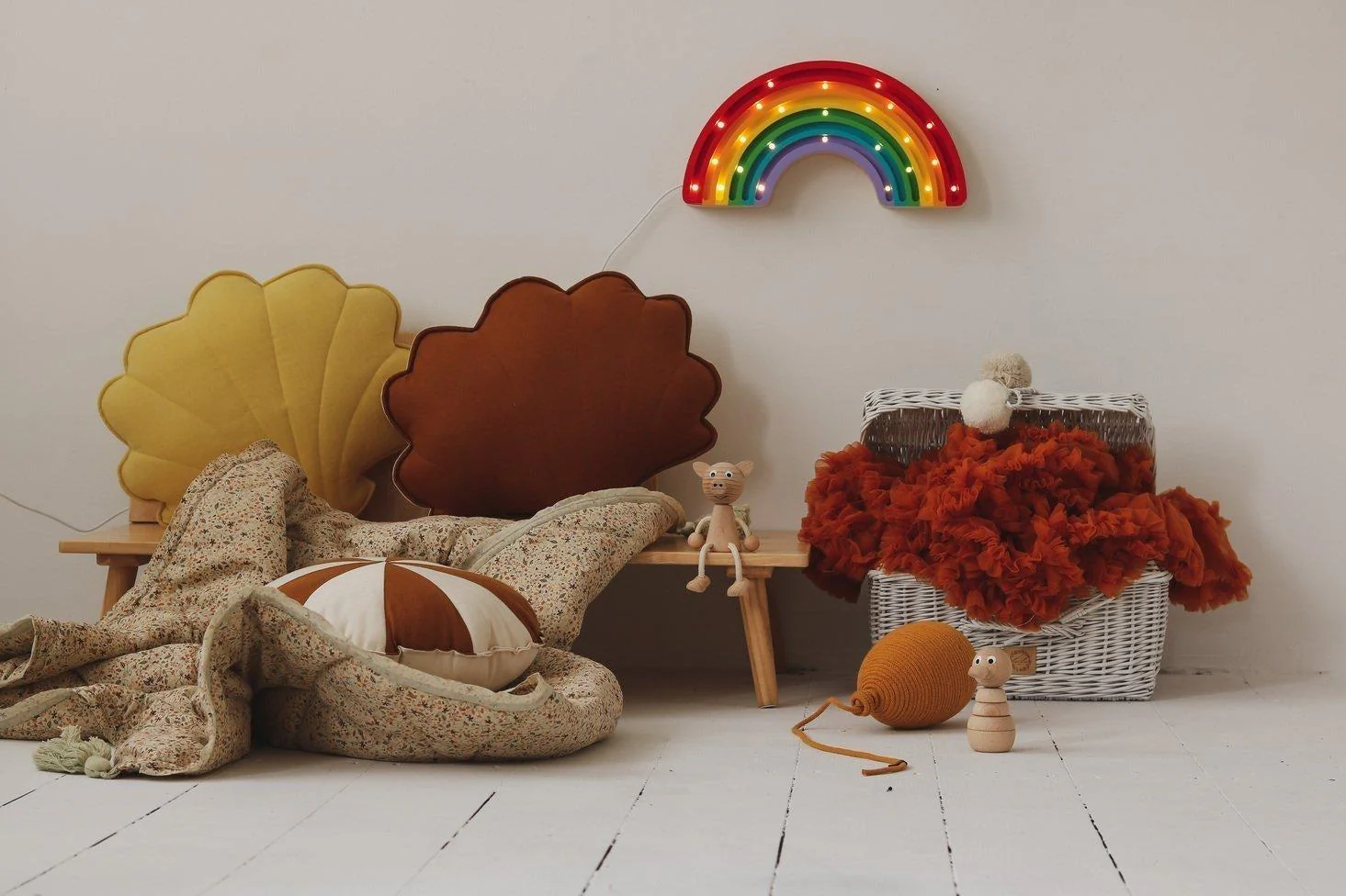 As almofadas decorativas em forma de CONCHA são lindas, muito confortáveis e práticas, criando condições perfeitas para cochilos e claro, brincadeiras! São também um complemento fantástico para fazer conjunto com as nossas tendas e tapetes.