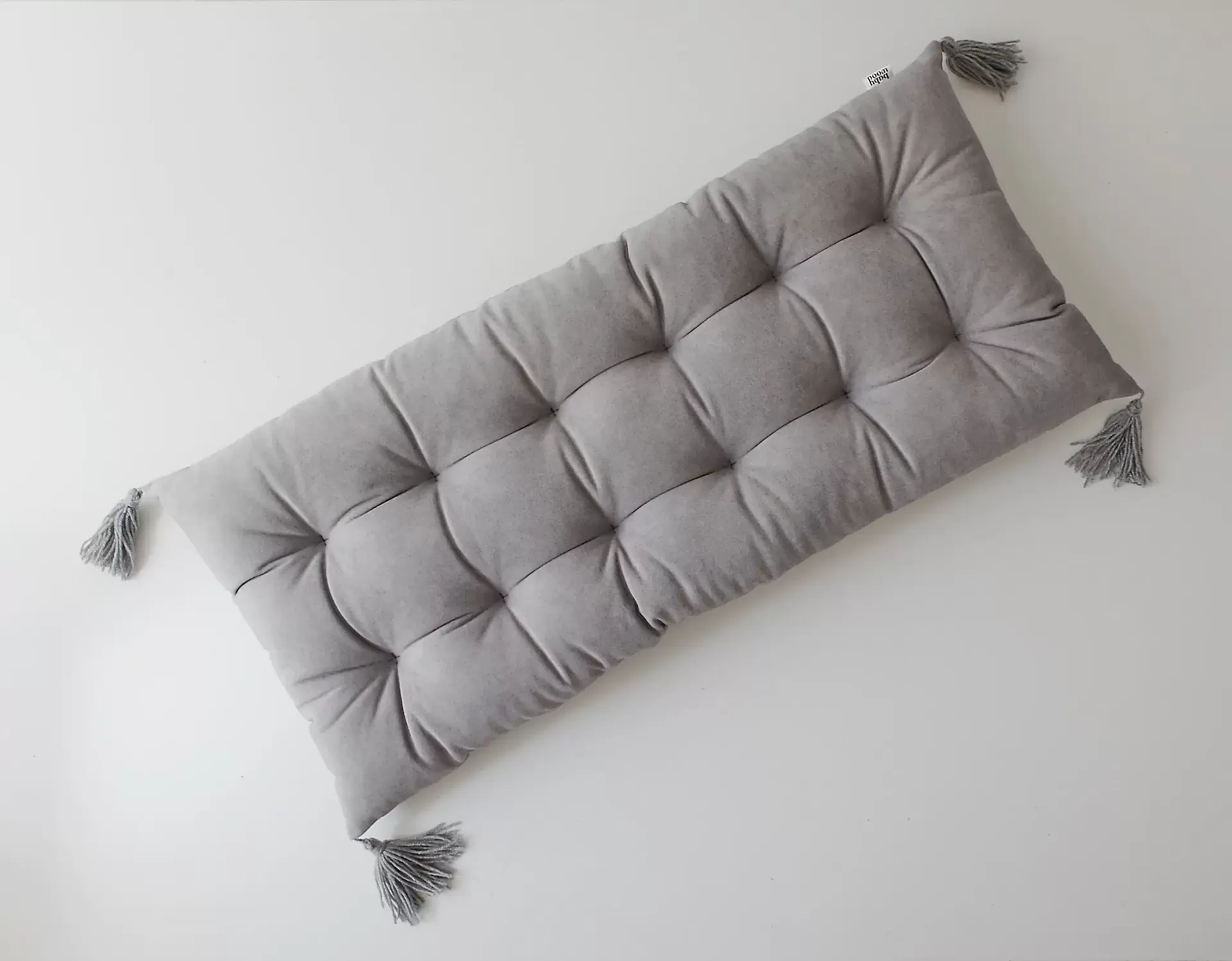 O travesseiro é preenchido com bolas de silicone antialérgicas e, ao mesmo tempo, dá elasticidade ao travesseiro. Além de possuirem nos cantos borlas de algodão.