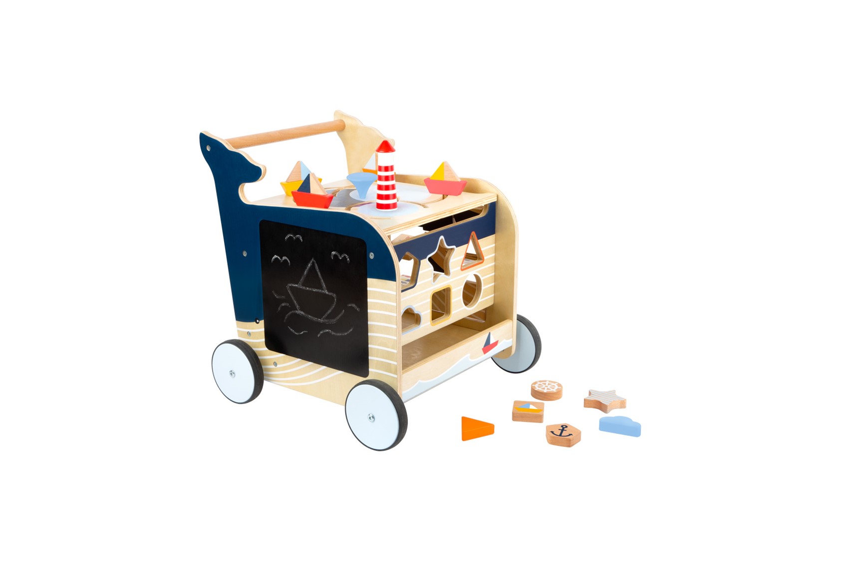 Com rodas de borracha, sistema de freio e espaço de armazenamento prático, garante primeiros passos seguros e organização no dia a dia. Um brinquedo premiado, educativo e amigo do ambiente – perfeito para transformar cada brincadeira em aprendizagem.