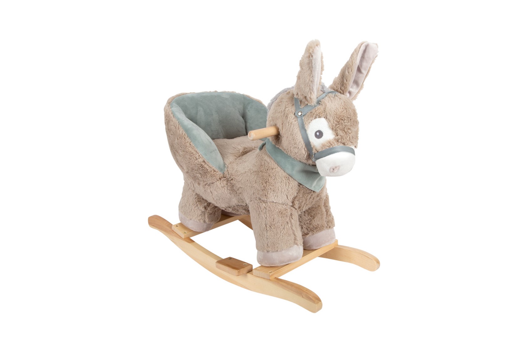 Apresente aos pequenos cavaleiros o Burrinho de Balanço de pelúcia, um brinquedo clássico que combina diversão, conforto e segurança. Com estrutura robusta em madeira e assento acolchoado em formato de poltrona com encosto, garante apoio seguro enquanto a criança se diverte a balançar.