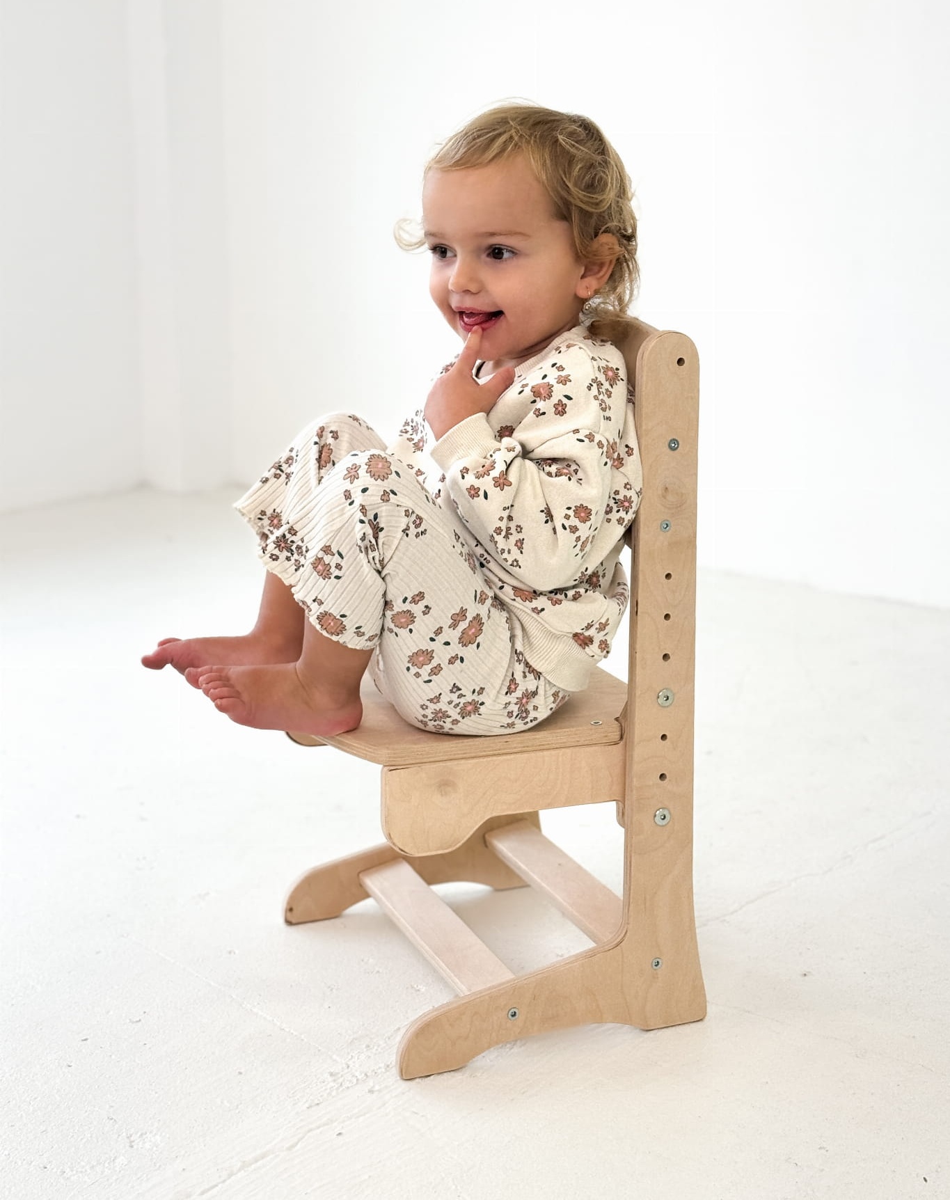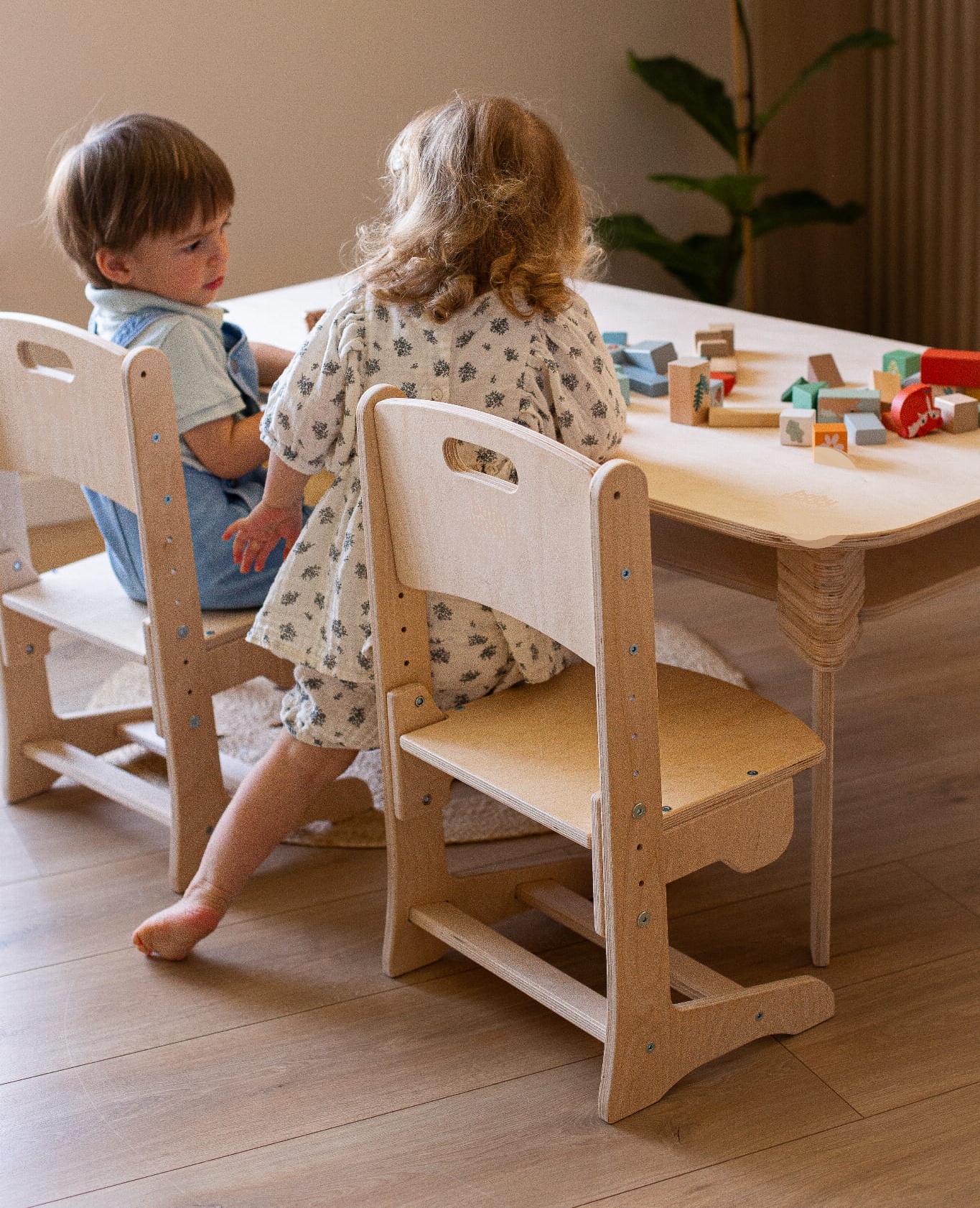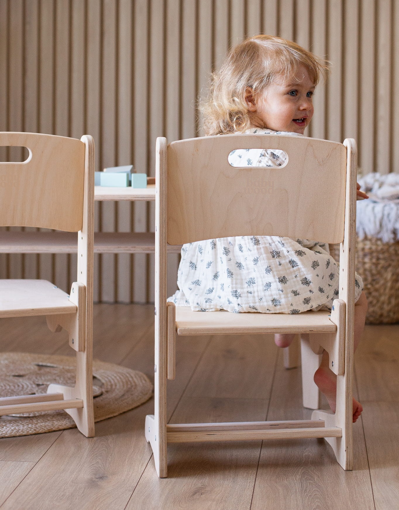 Desenvolvida com foco em ergonomia e segurança, a cadeira oferece suporte sólido para a coluna, garantindo uma postura correcta ao brincar, comer, desenhar ou aprender — perfeita para ambientes Montessori, salas de estudo, creches ou simplesmente para uso diário em casa.