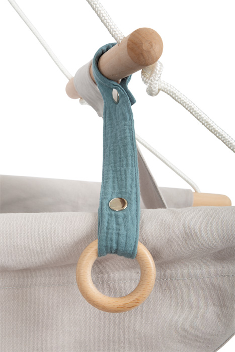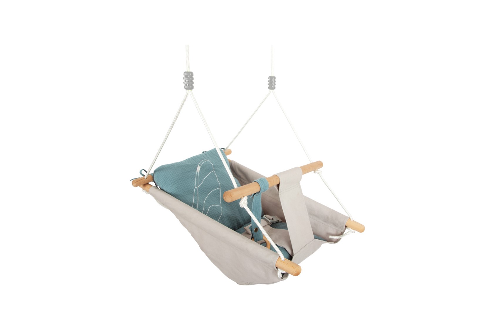 O moderno tom azul esfumaçado, aliado ao alto teor de madeira natural visível, transforma este balanço para bebés num destaque elegante em qualquer espaço. Compatível com outros acessórios, como chupetas e brinquedos, e idealmente combinado com a linha "Seaside".