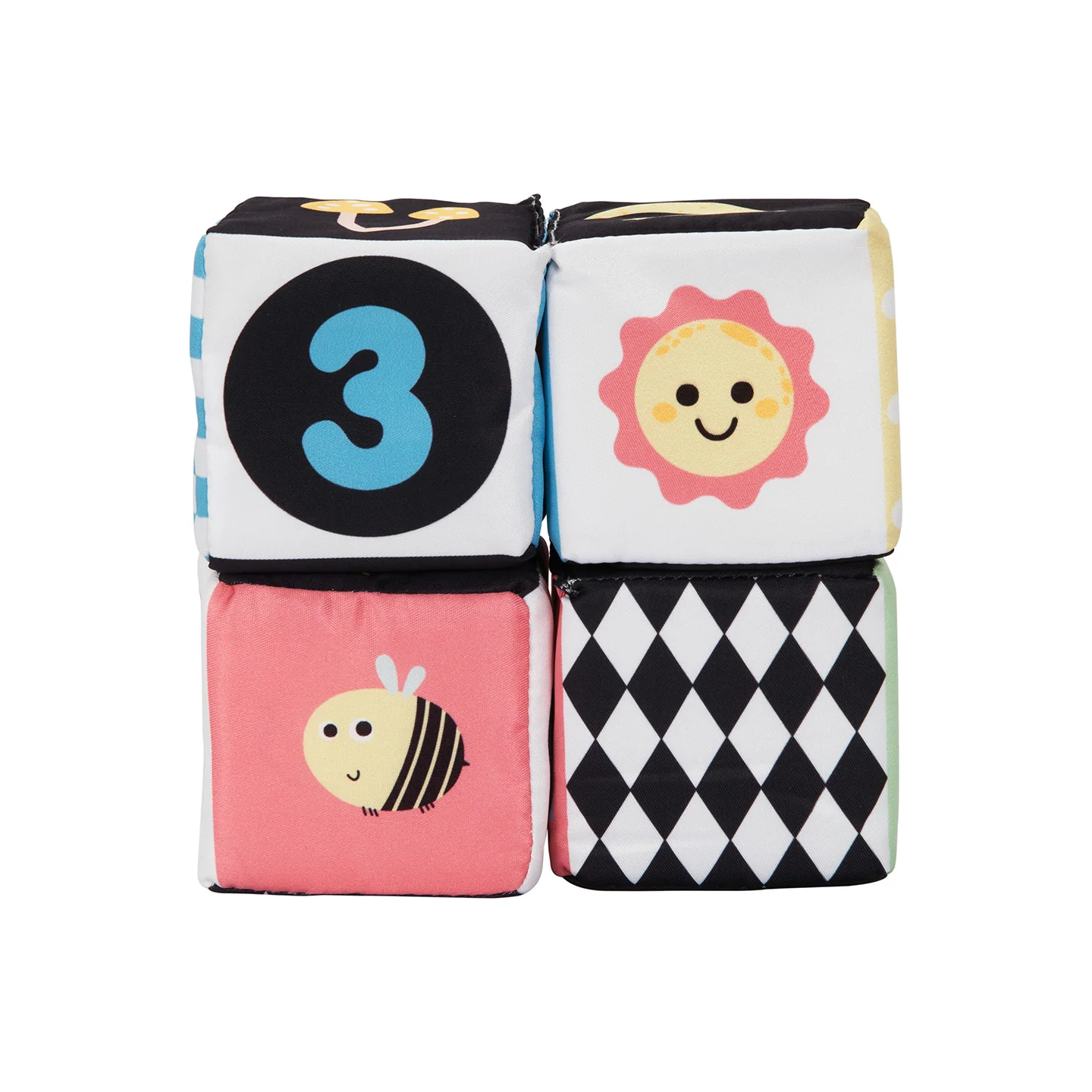 Blocos macios com imagens e números: Ajudam o bebé a reconhecer formas, cores e números, promovendo a coordenação motora e a atenção visual.