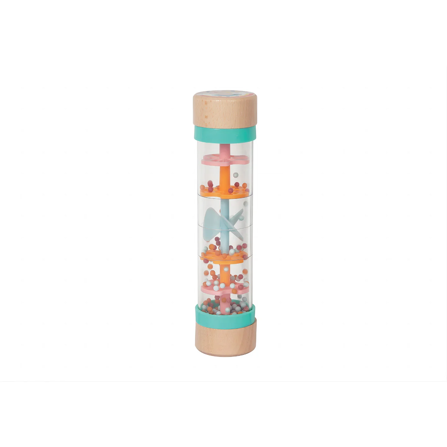 Chocalho de chuva: Produz um som delicado que lembra a chuva, promovendo a perceção auditiva e visual.