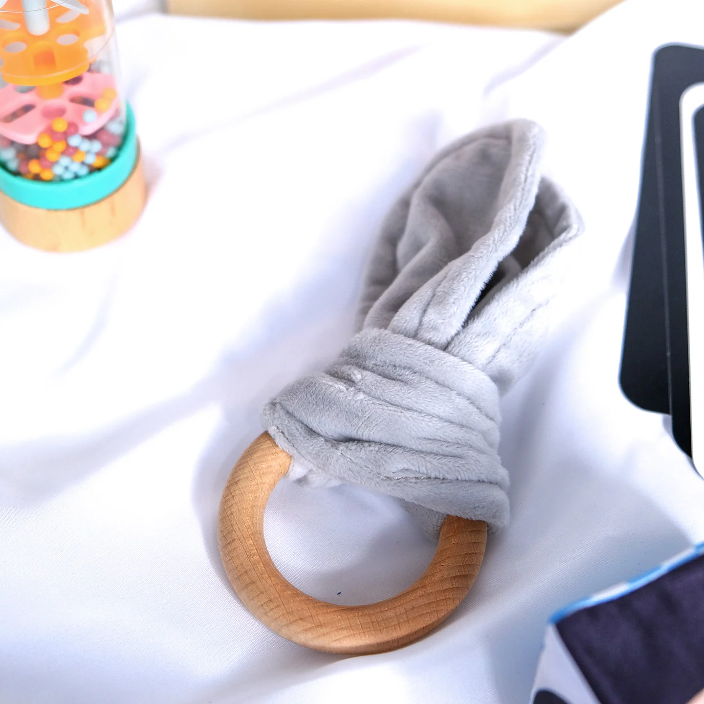 Mordedor de anel e orelhas: Fácil de segurar, contribui para o desenvolvimento da motricidade fina e alivia o desconforto da dentição.