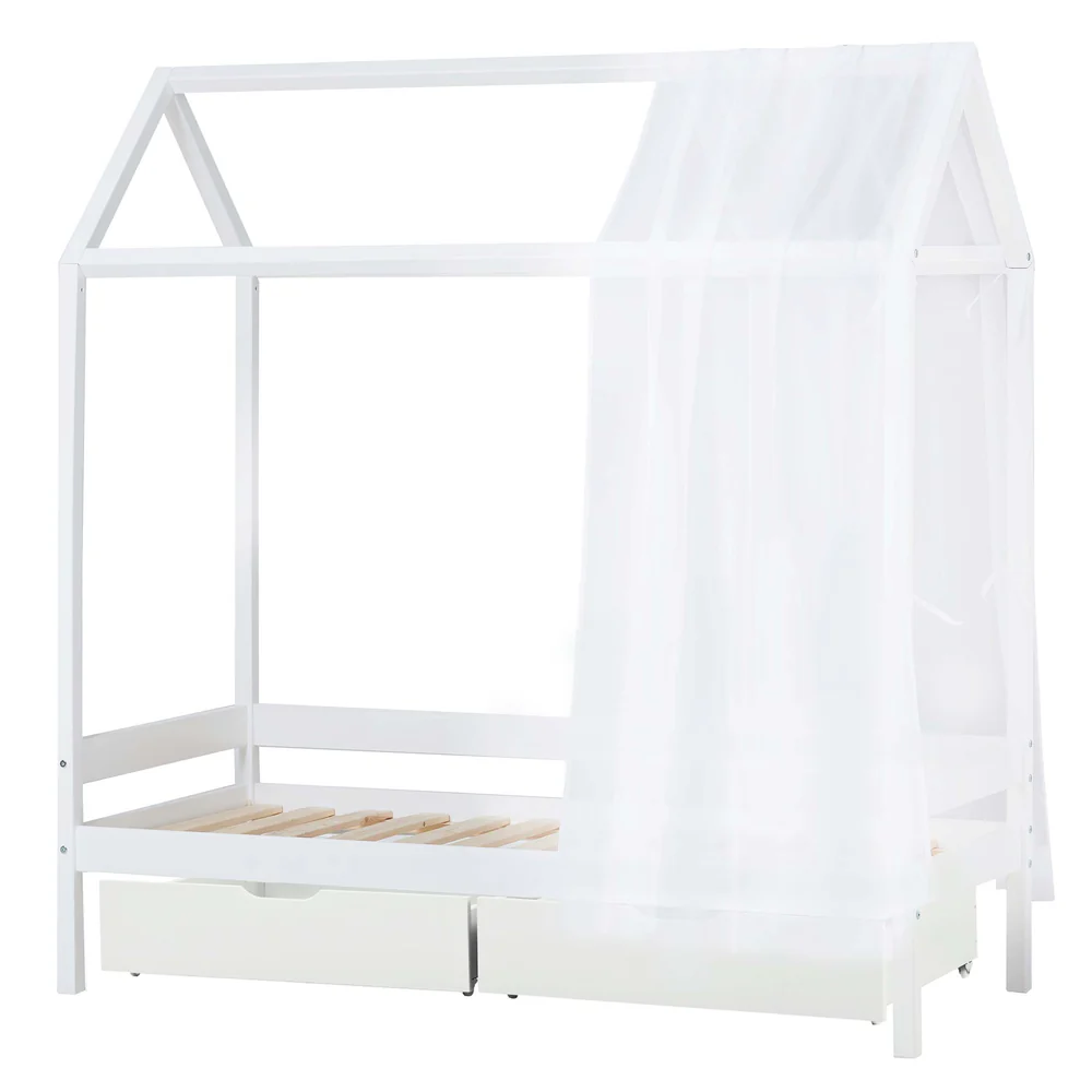 Cama Casinha Eco Conforto 70x160 com Gavetas e Dossel