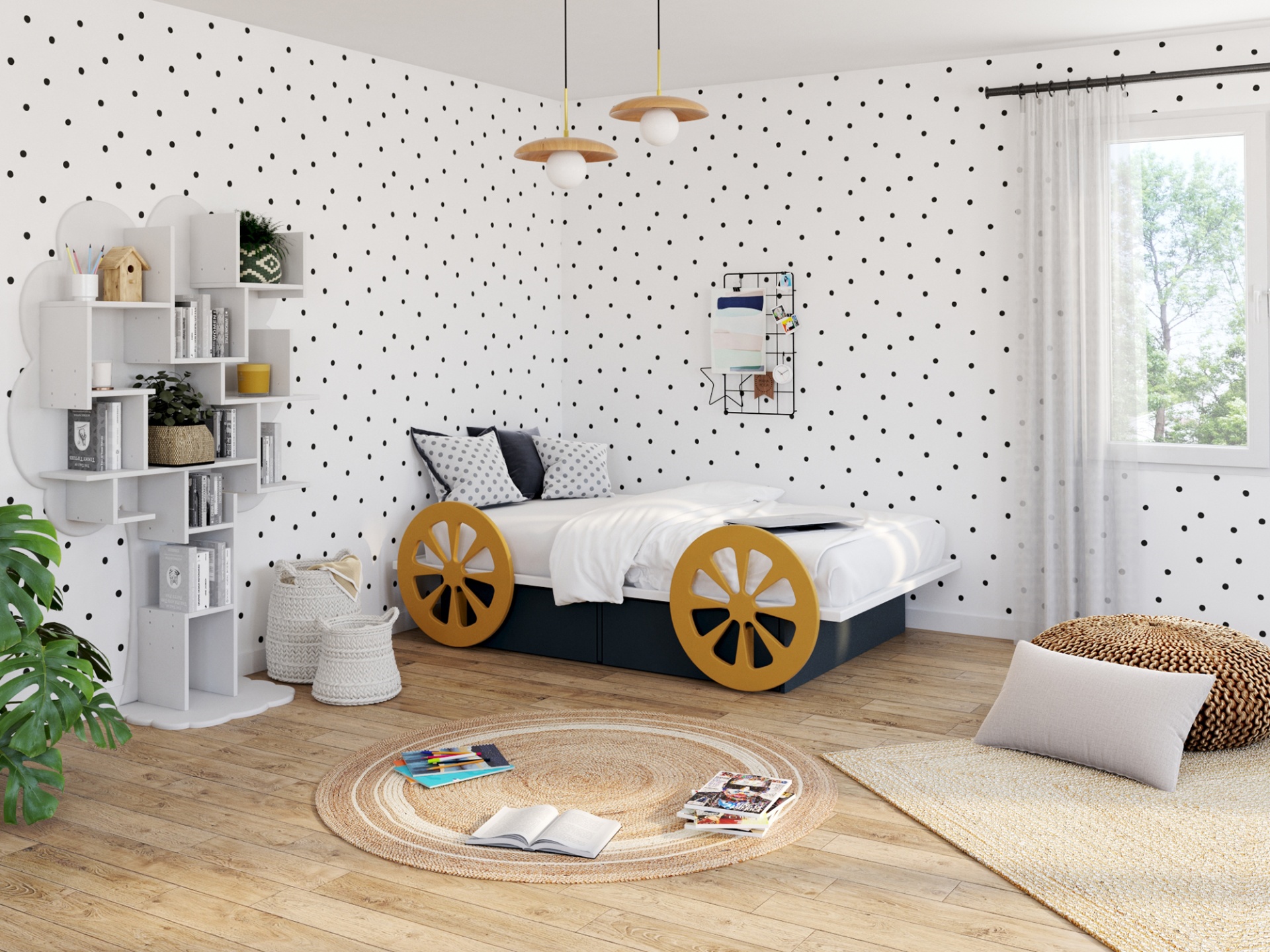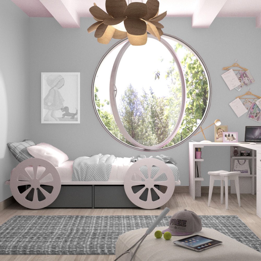 A Cama Infantil Carruagem sem cobertura combina um design lúdico com linhas simples e elegantes.