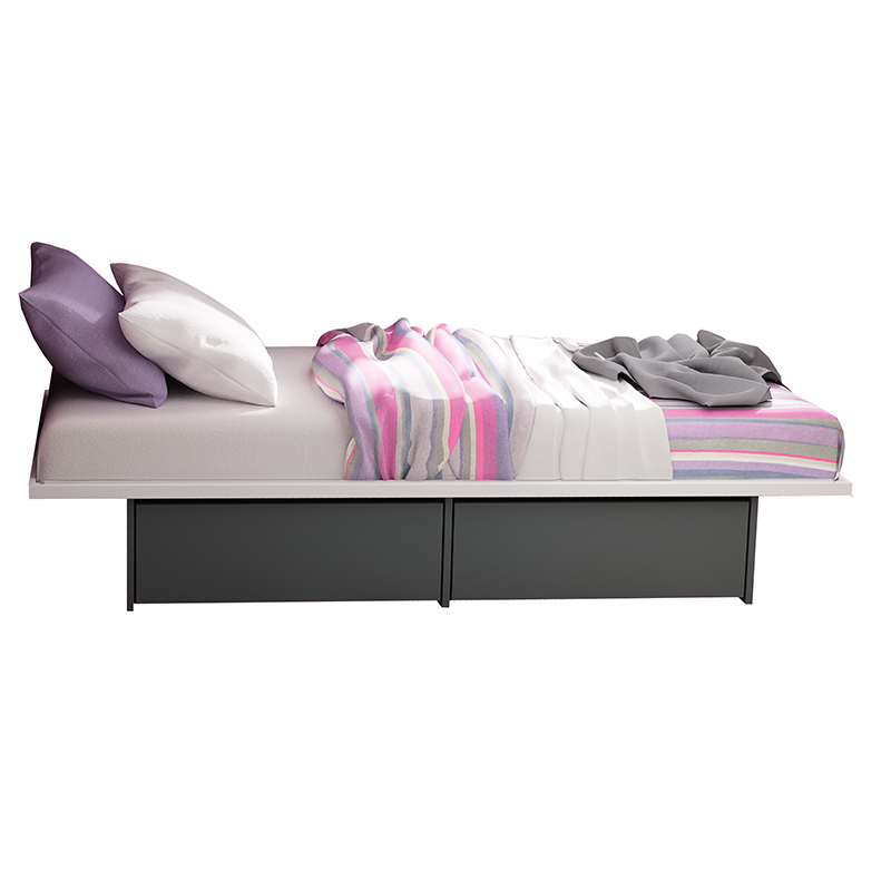 Base em melamina branca perfurada, garantindo resistência e ventilação adequada do colchão.