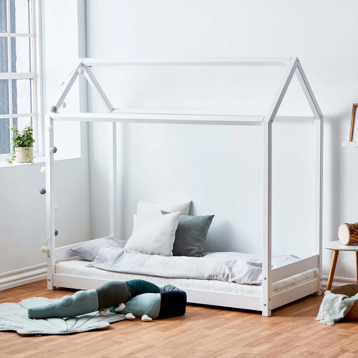 A Cama Infantil Casinha Eco One 70x160 é a escolha perfeita para quem procura uma cama infantil com design nórdico simples, funcional e acolhedor. Com estrutura leve e elegante, adapta-se facilmente a qualquer quarto infantil, criando um ambiente tranquilo, moderno e cheio de conforto.