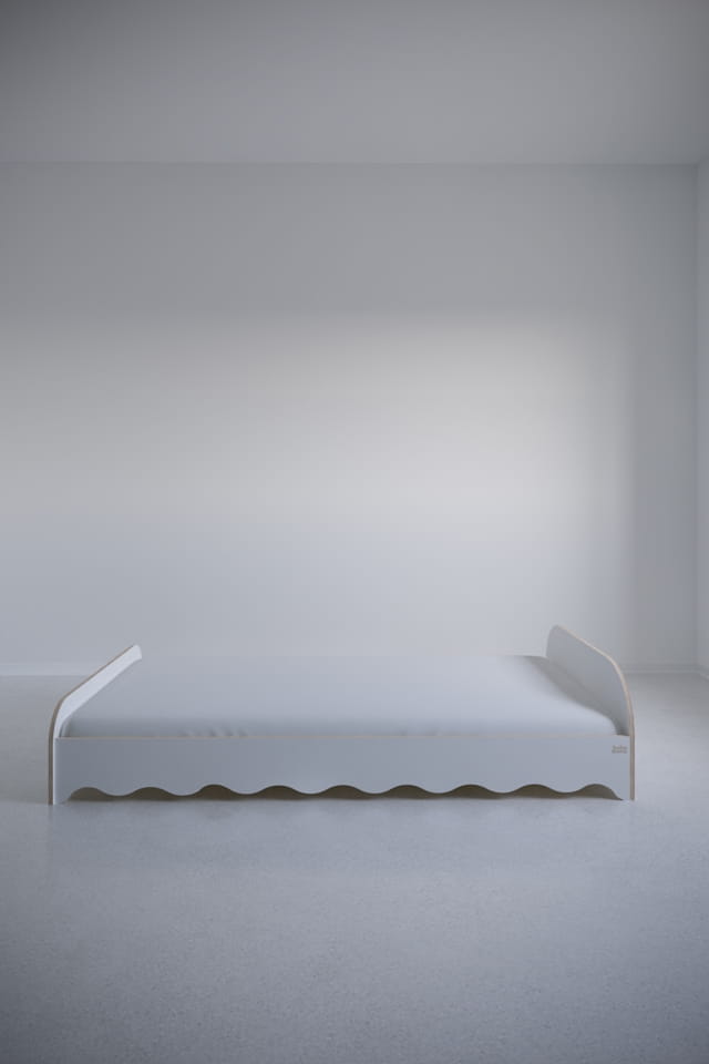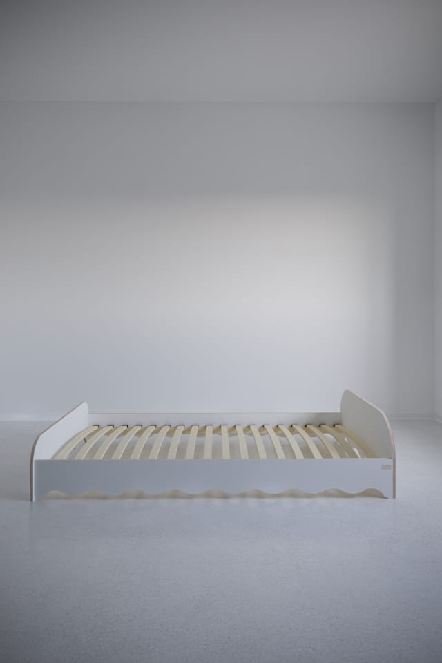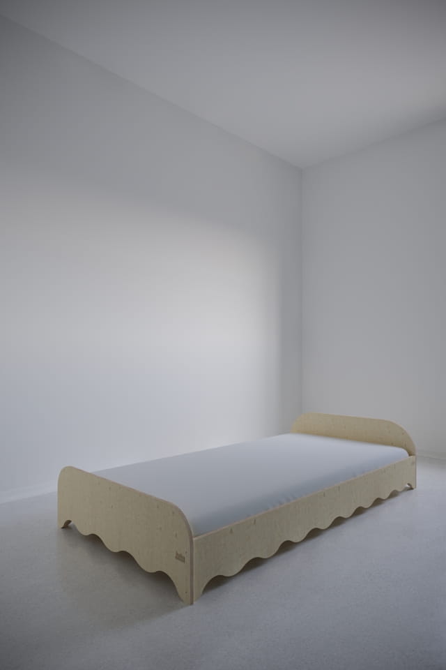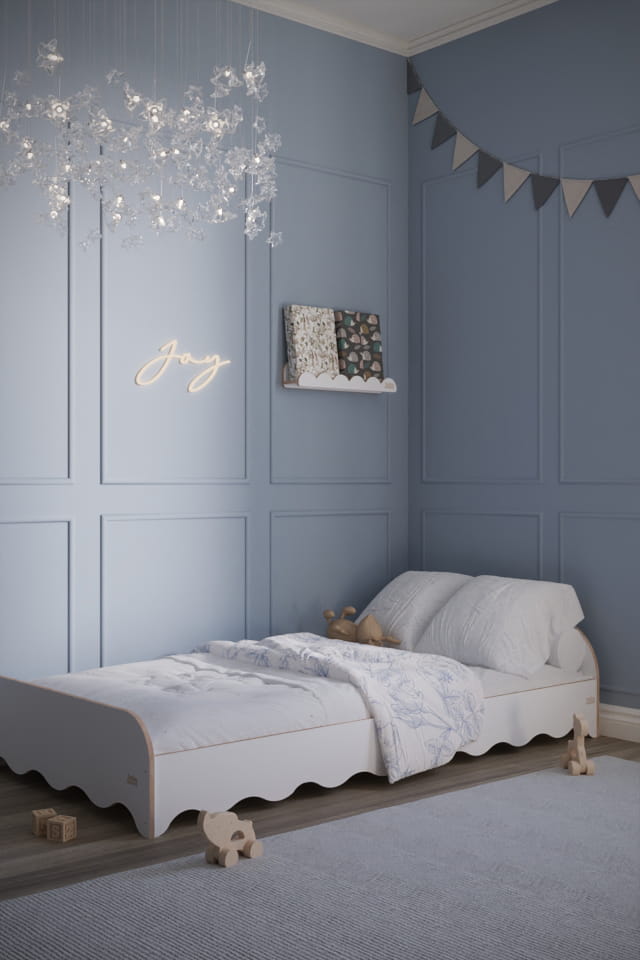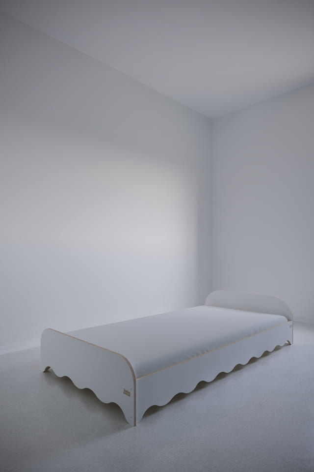 Com um design moderno e suave em “onda”, a cama combina estética, funcionalidade e materiais seguros – perfeita para quartos infantis contemporâneos.