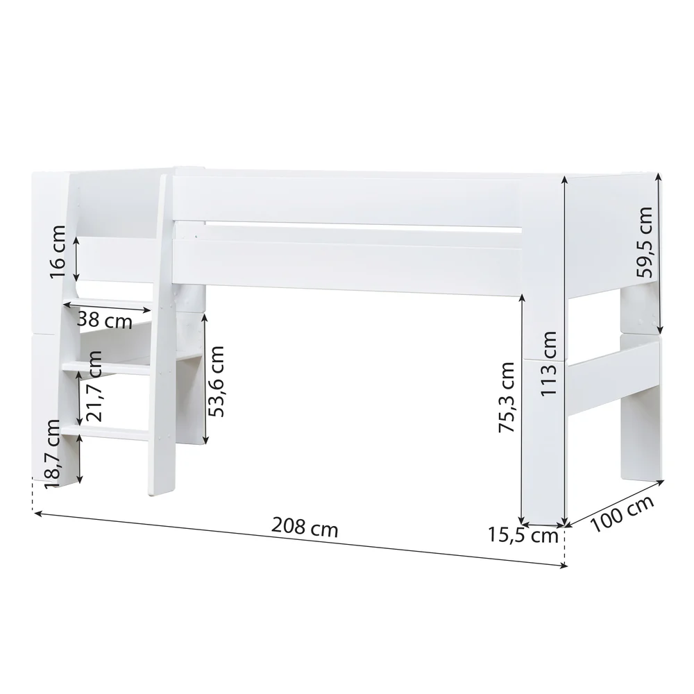 A Cama Meia-Altura Puro combina design intemporal em branco com segurança e conforto para crianças em crescimento. Com dimensões generosas de 90x200 cm, oferece espaço suficiente para noites de sono tranquilas, liberdade de movimentos e conforto duradouro.