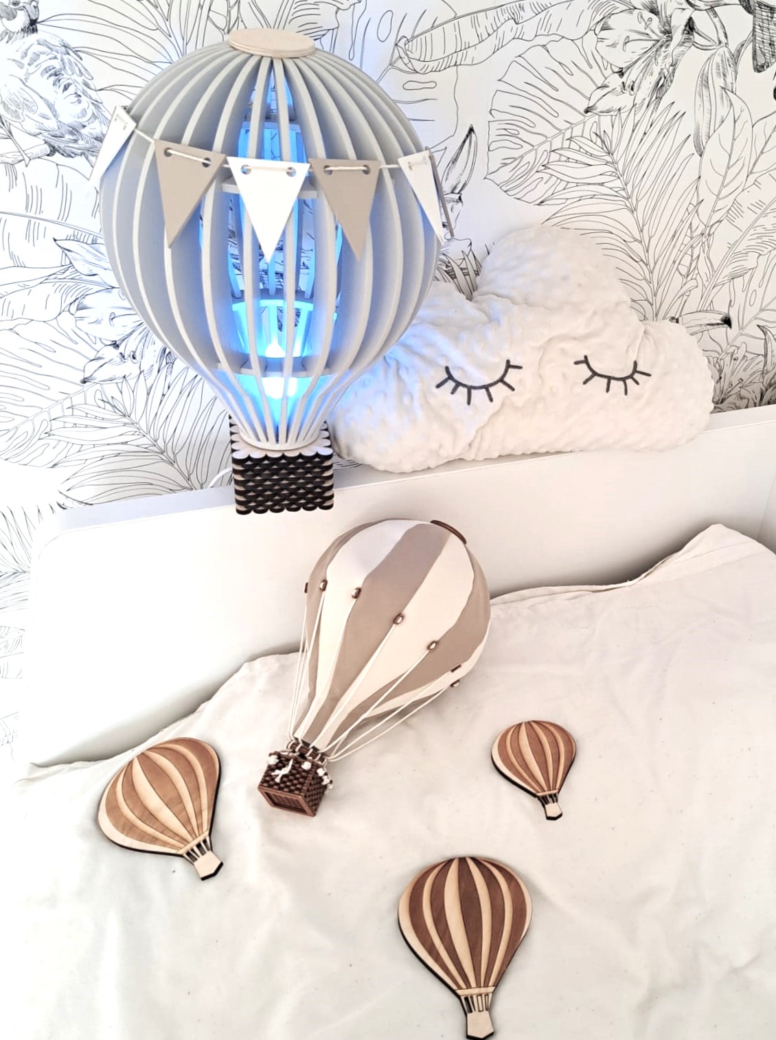 Este candeeiro decorativo é feito de madeira e certamente trará uma atmosfera mágica ao quarto do seu bebé. Ao mesmo tempo um belo elemento de design de interiores, enquanto o seu pequenino dorme, lê ou brinca.