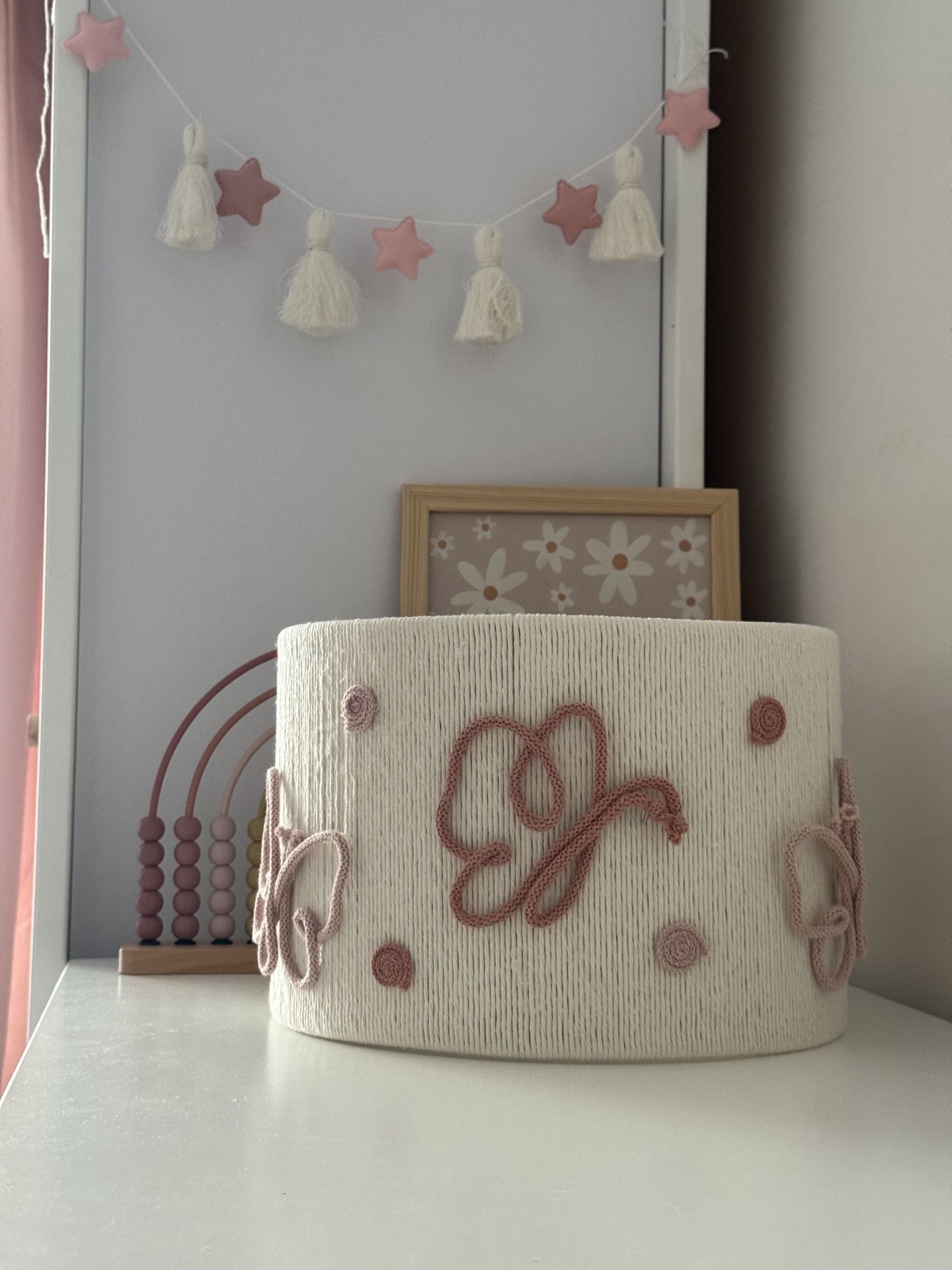 Leveza e alegria chegam ao quarto infantil com o Candeeiro Infantil Borboletas da Marangga Kids. Feito à mão com barbante de algodão natural, apresenta delicadas borboletas rosa e espirais que dançam sobre o fundo cru, criando um ambiente mágico, acolhedor e cheio de encanto.