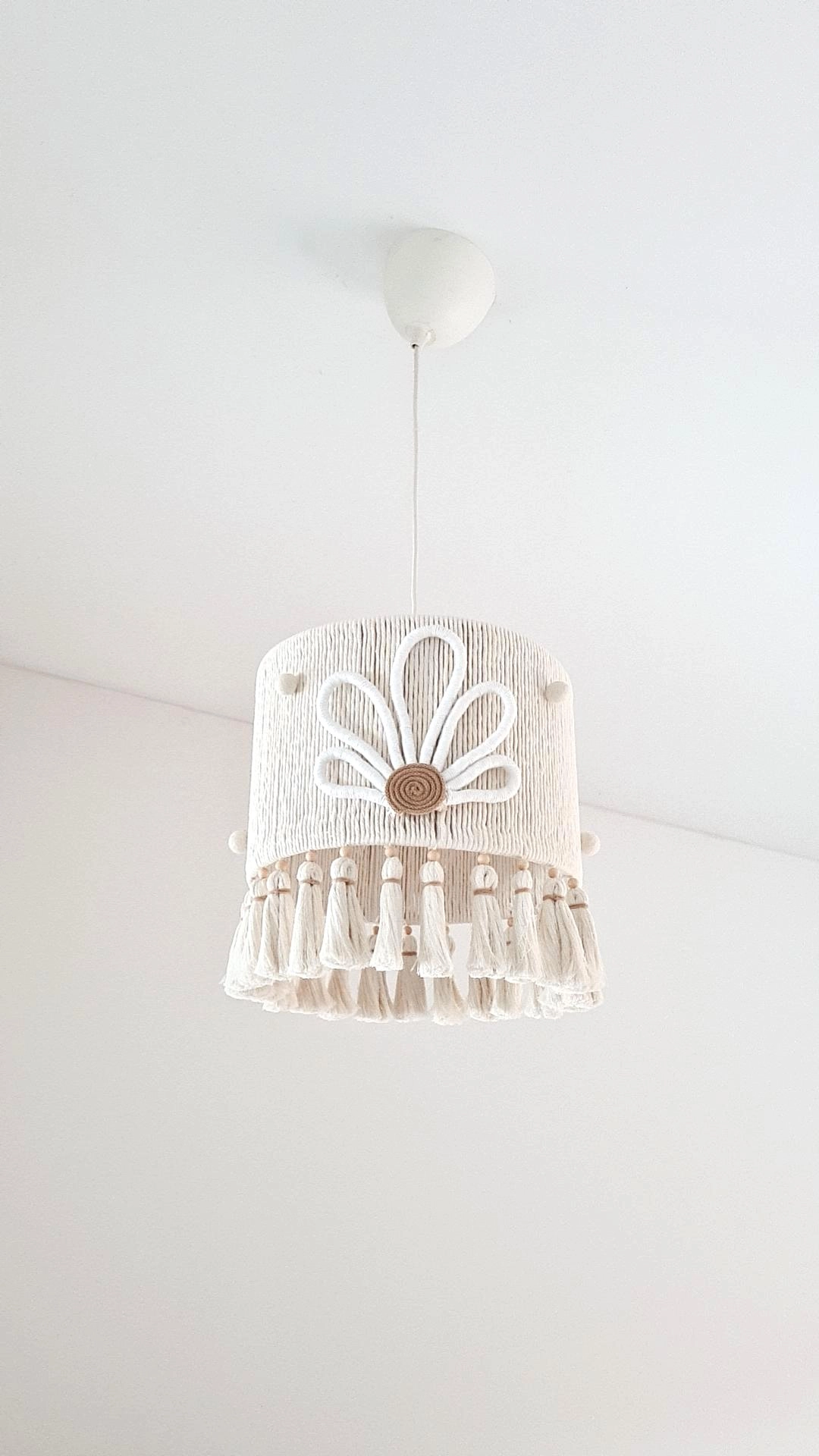 • Candeeiro de teto branco com padrão floral e franjas