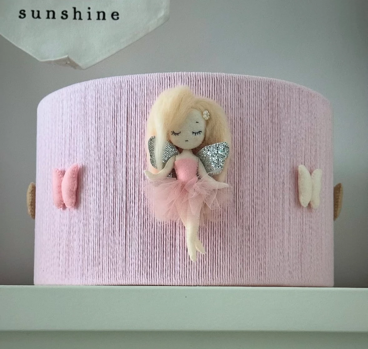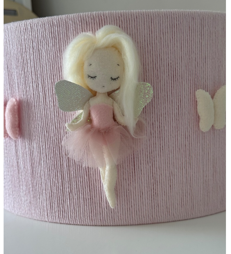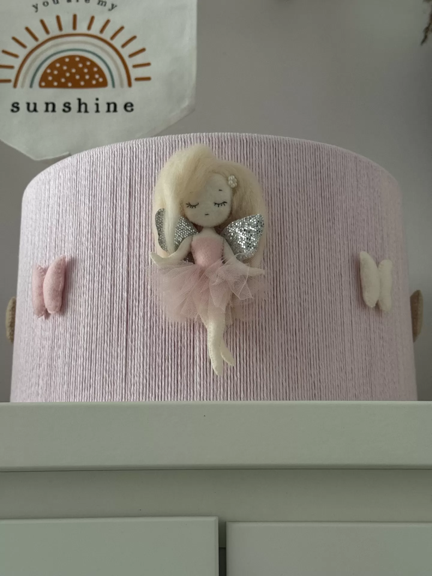 Deixe que a magia das fadas ilumine o quarto da sua princesinha com este delicado Candeeiro Fada. O abajur rosa suave cria uma atmosfera acolhedora e encantadora, enquanto os detalhes feitos à mão de uma linda fada e quatro borboletas em feltro, tornam-no único e cheio de ternura.