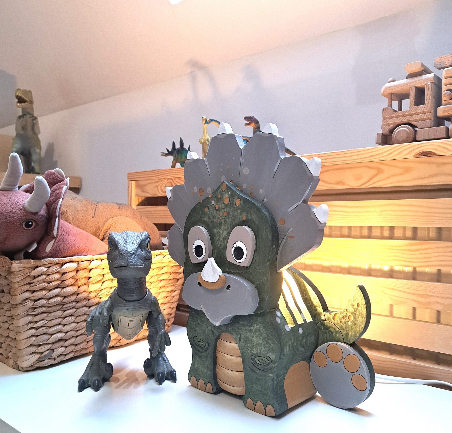 Candeeiro Dinossauro de Madeira Controlado por SMARTPHONE