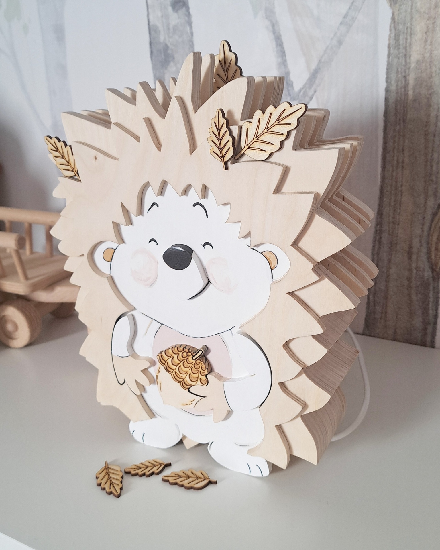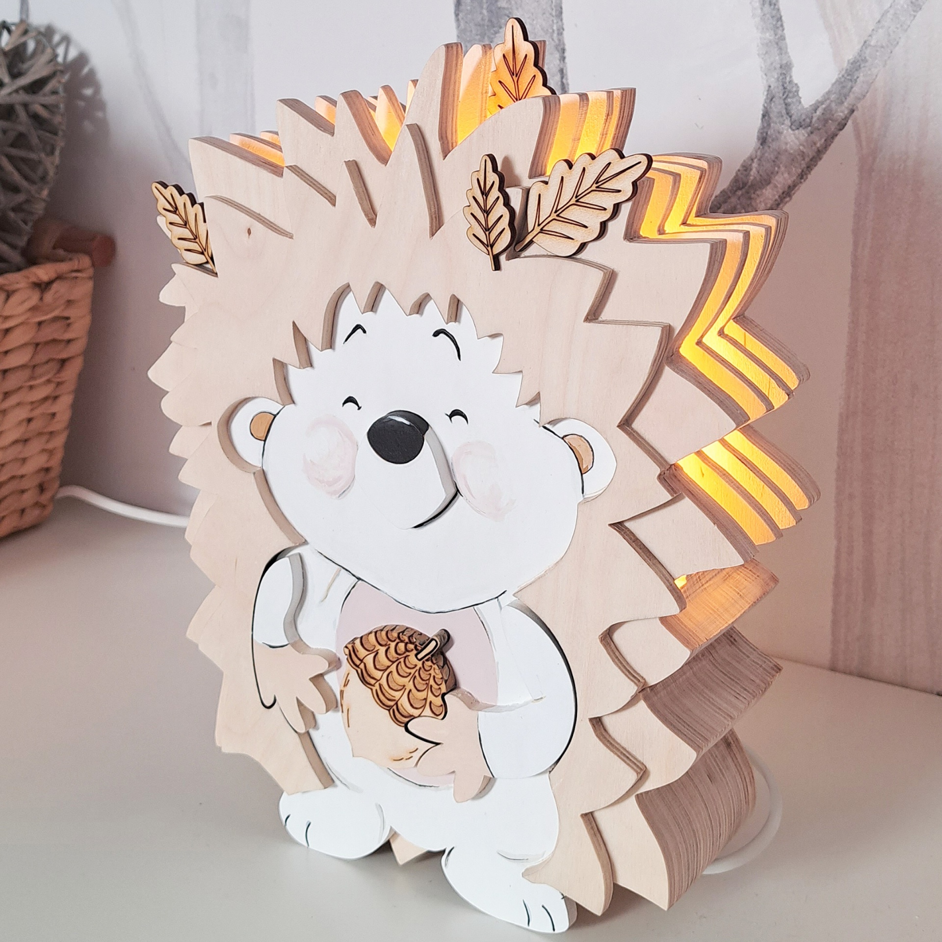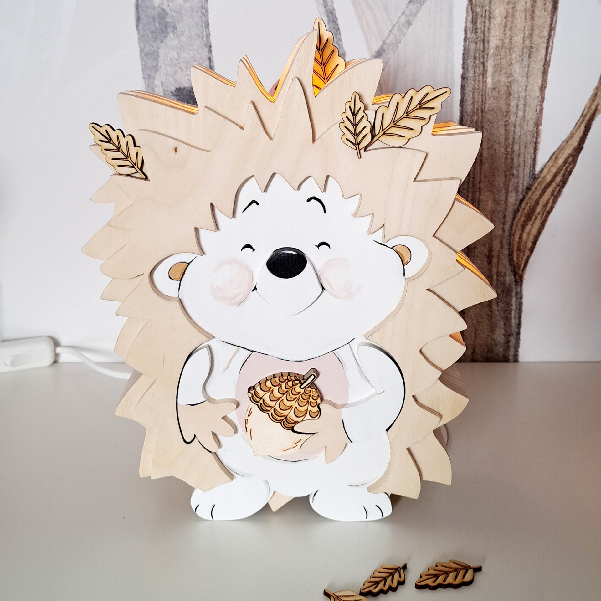 Este candeeiro decorativo é feito de madeira e certamente trará uma atmosfera mágica ao quarto da sua criança. Ao mesmo tempo um belo elemento de design de interiores, enquanto o seu pequenino dorme, lê ou brinca.