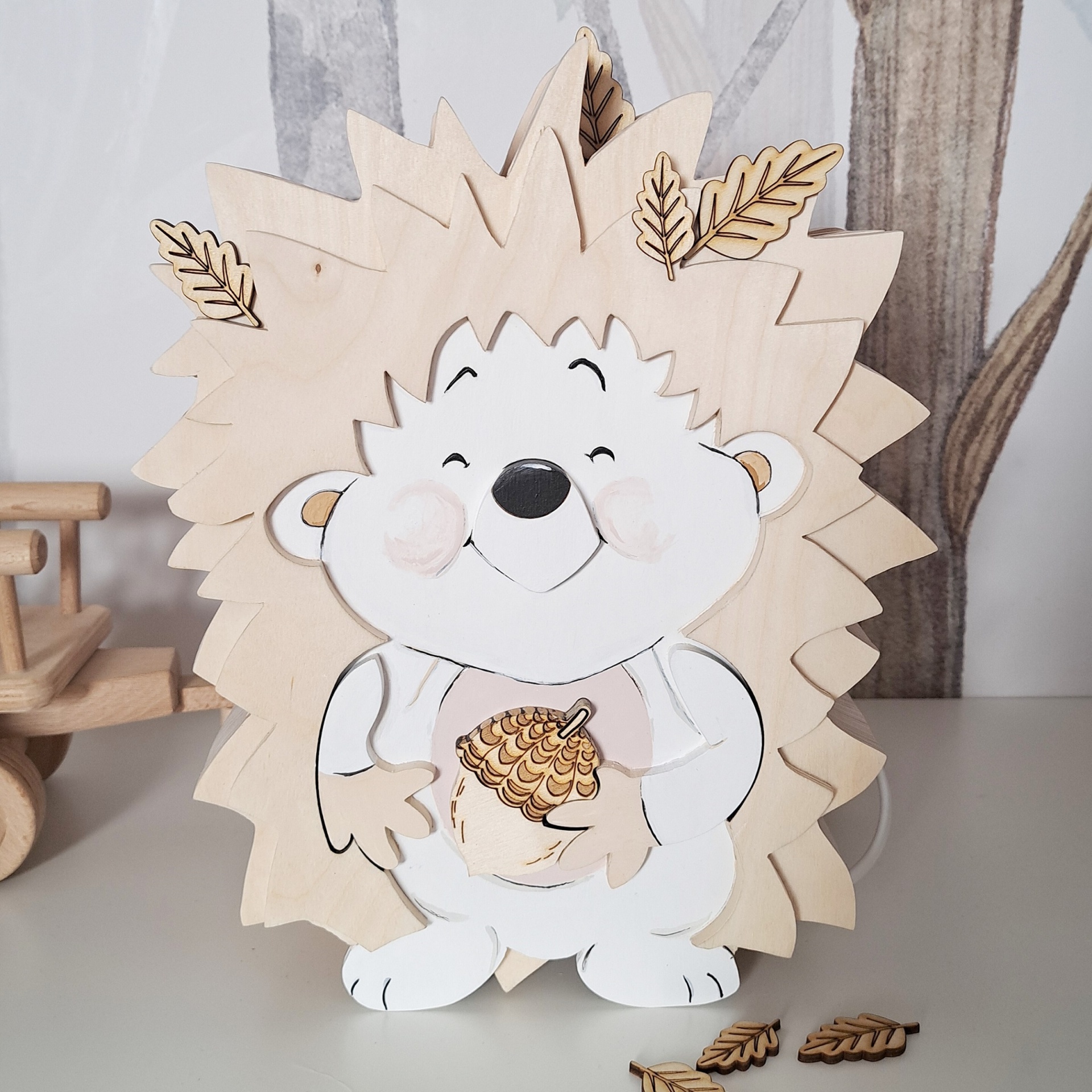 A escolha do material não é acidental. Optamos por compensado de bétula, que corresponde à nossa necessidade de naturalidade e é uma matéria-prima ideal para criar formas especiais. Garante um uso prolongado e seguro para crianças.