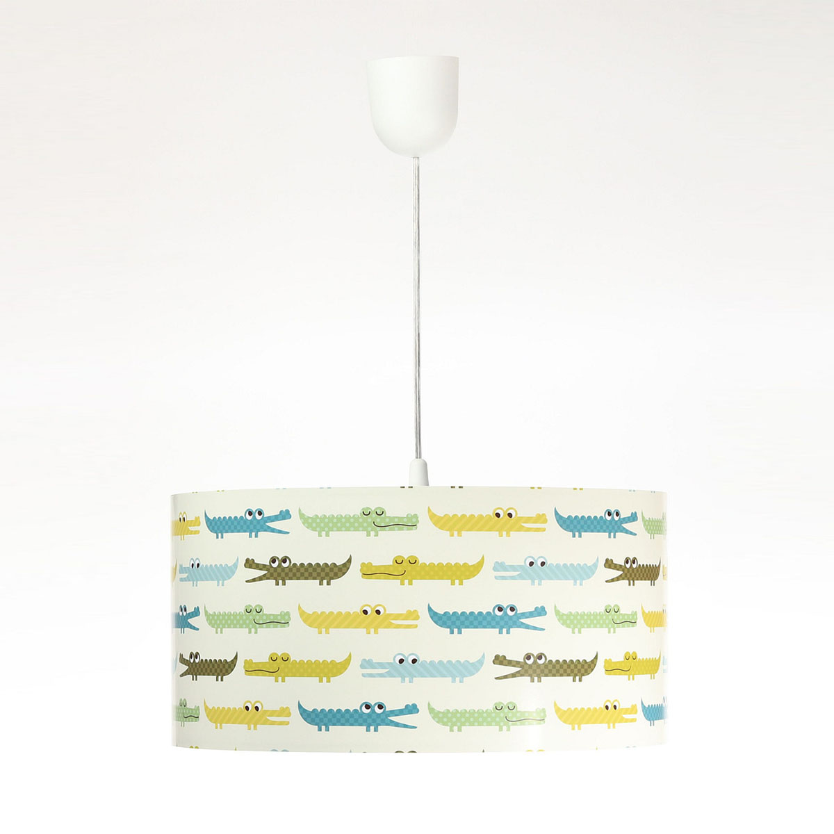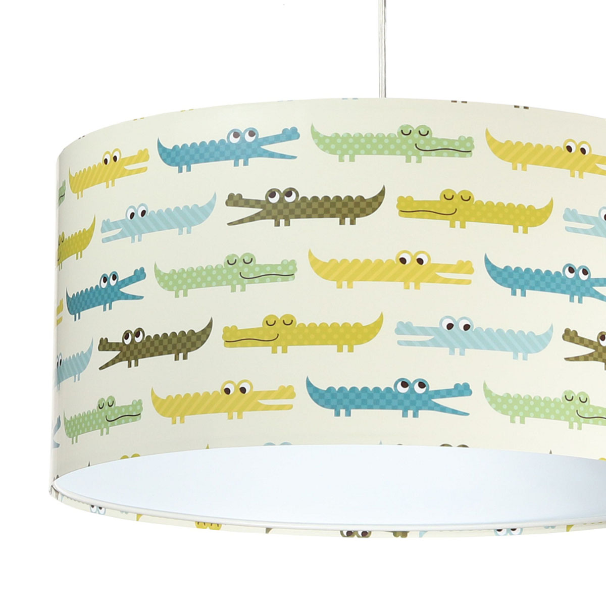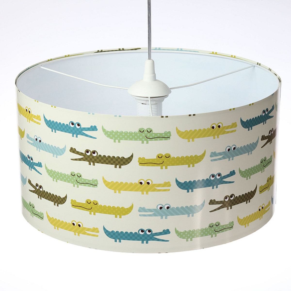 Dê um toque divertido e original ao quarto dos mais pequenos com o encantador Candeeiro Suspenso CROCODILOS. Com um padrão vibrante de crocodilos em tons de azul, verde e amarelo, esta peça traz alegria, cor e uma pitada de aventura ao espaço infantil, ideal tanto para meninos quanto para meninas.