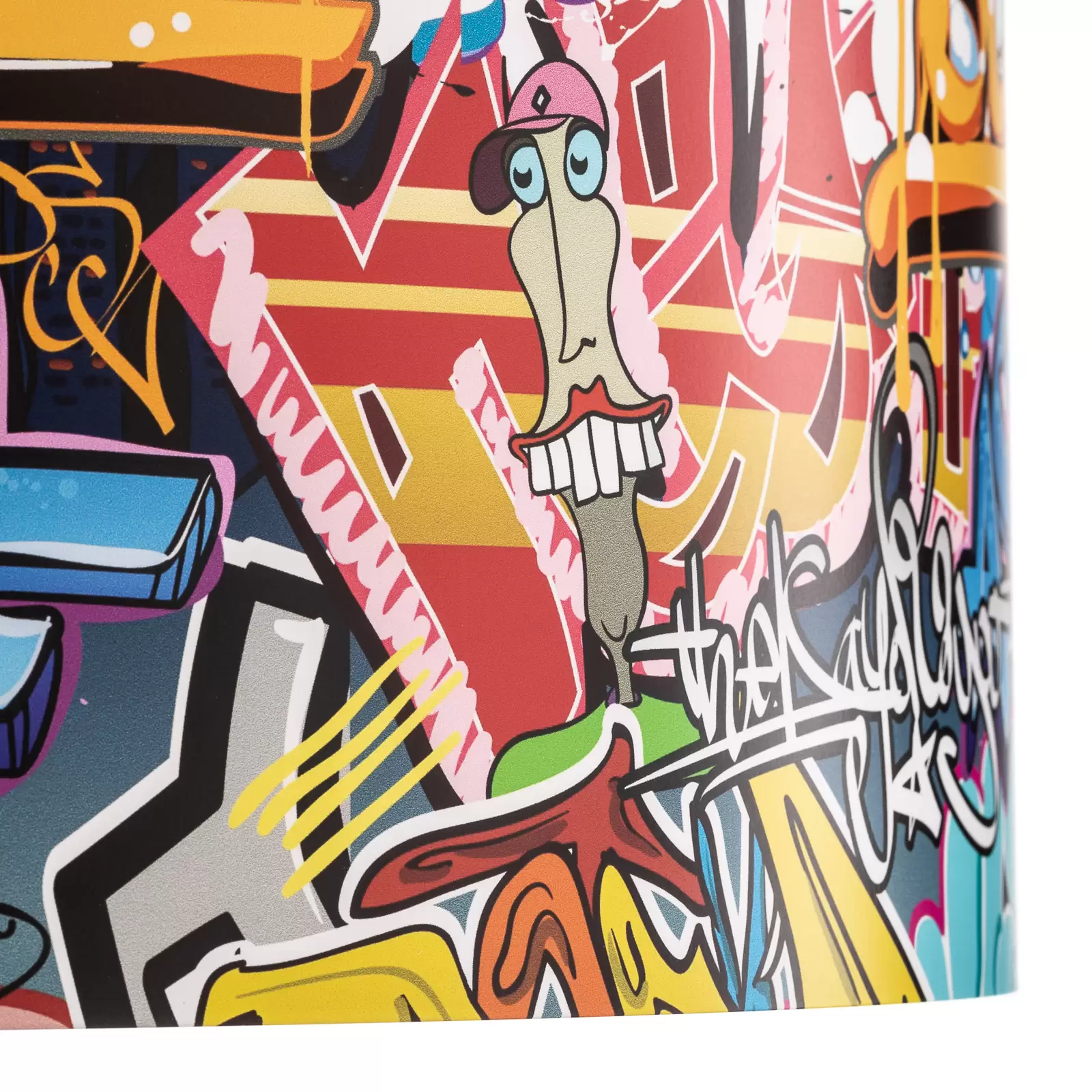 Com uma estampa que remete às paredes coloridas das ruas, o abajur branco é salpicado com detalhes multicoloridos que evocam o graffiti tradicional, mas com equilíbrio visual e suavidade, sem causar excesso visual. É a escolha perfeita para jovens que valorizam estilo, originalidade e identidade no seu espaço.