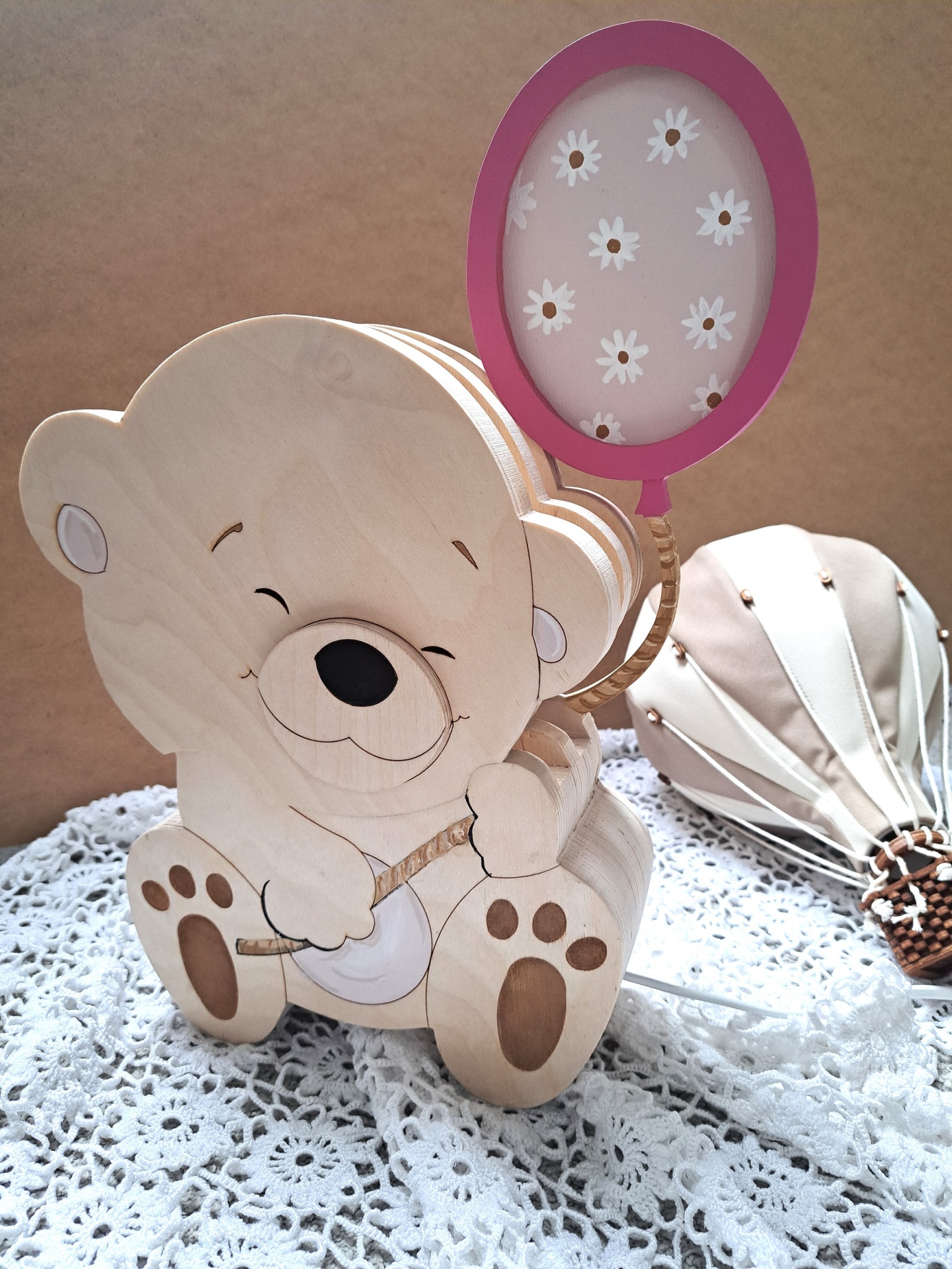 Este candeeiro decorativo é feito de madeira e certamente trará uma atmosfera mágica ao quarto do seu bebé. Ao mesmo tempo um belo elemento de design de interiores, enquanto o seu pequenino dorme, lê ou brinca.