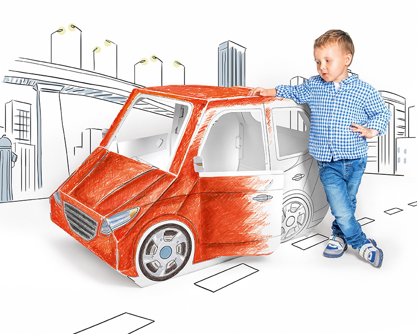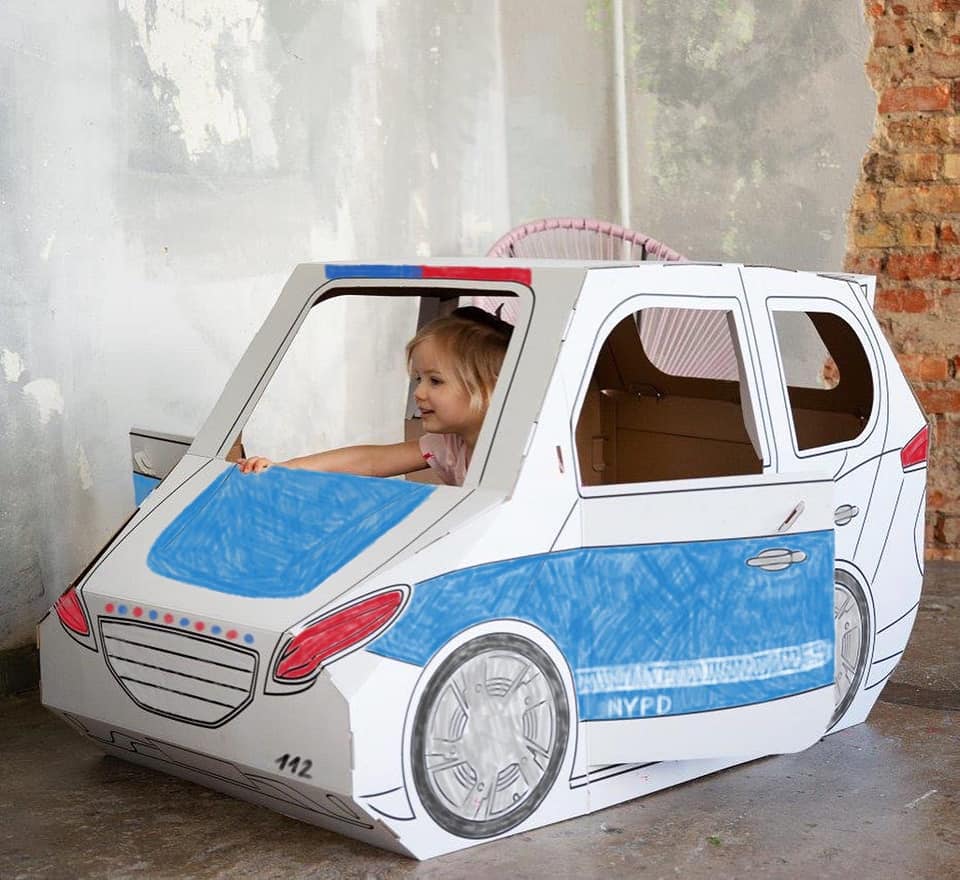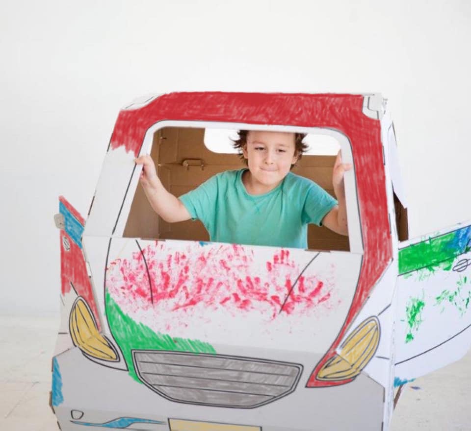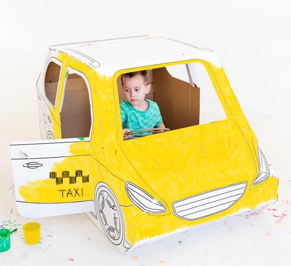 O carrinho dobrável para colorir é feito de cartão ondulado branco de 5 camadas, garantindo resistência, leveza e sustentabilidade. Além de divertido, é uma forma de introduzir as crianças ao universo dos brinquedos ecológicos e criativos.