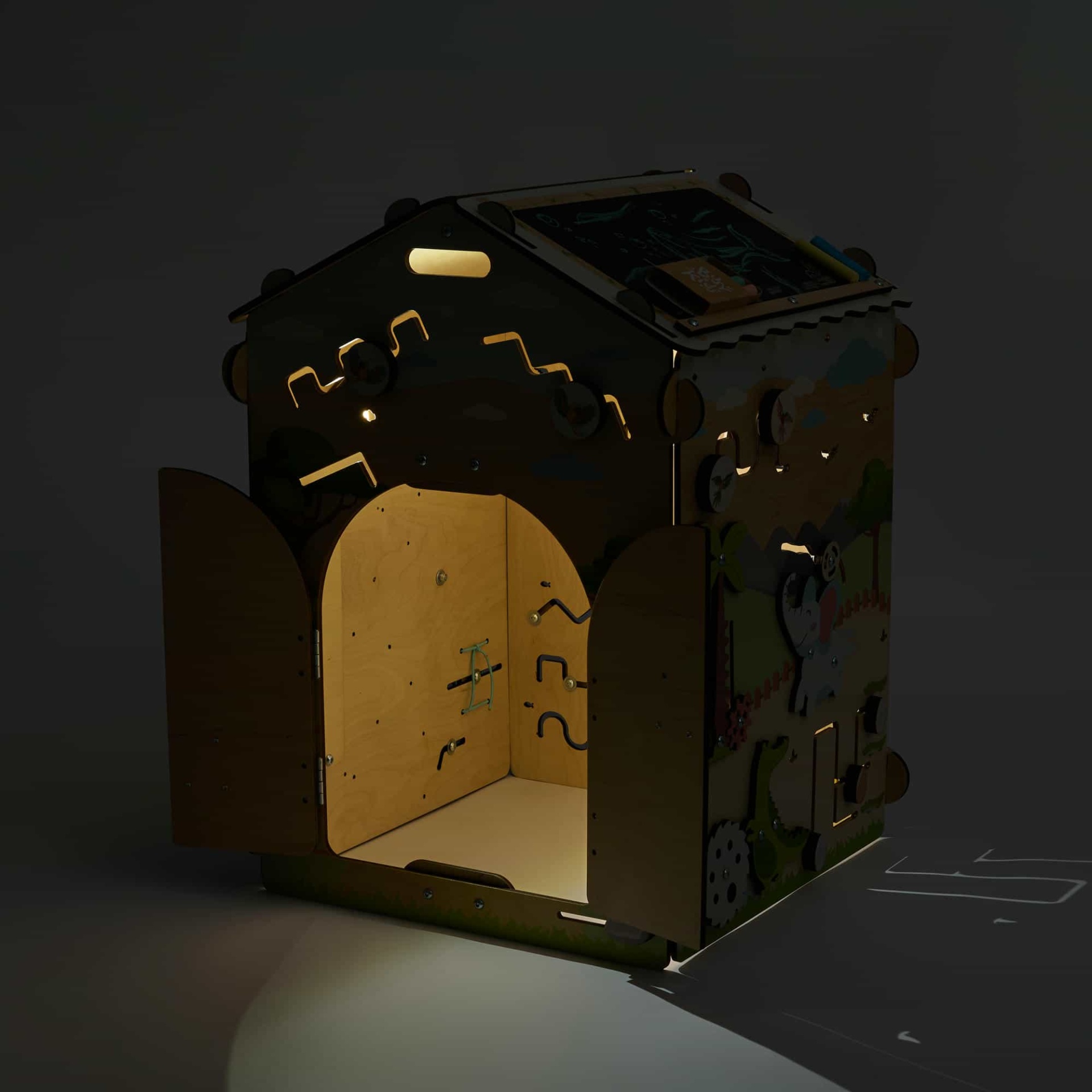 Mais que um brinquedo, é um verdadeiro centro educativo inspirado na metodologia Montessori, que estimula a criatividade, autonomia e diversão. Com figuras de leões, elefantes, zebras e pinguins, a casinha incentiva brincadeiras imaginativas e narrativas, além de oferecer um refúgio confortável para descanso e exploração.