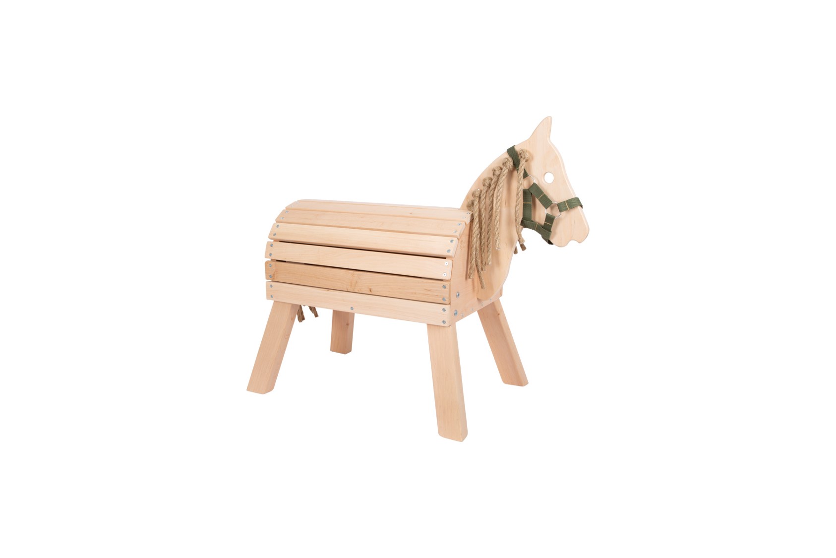 Este pequeno cavalo de madeira é perfeito para o quarto das crianças ou o jardim, oferecendo uma experiência realista e educativa para os jovens apaixonados por equitação.