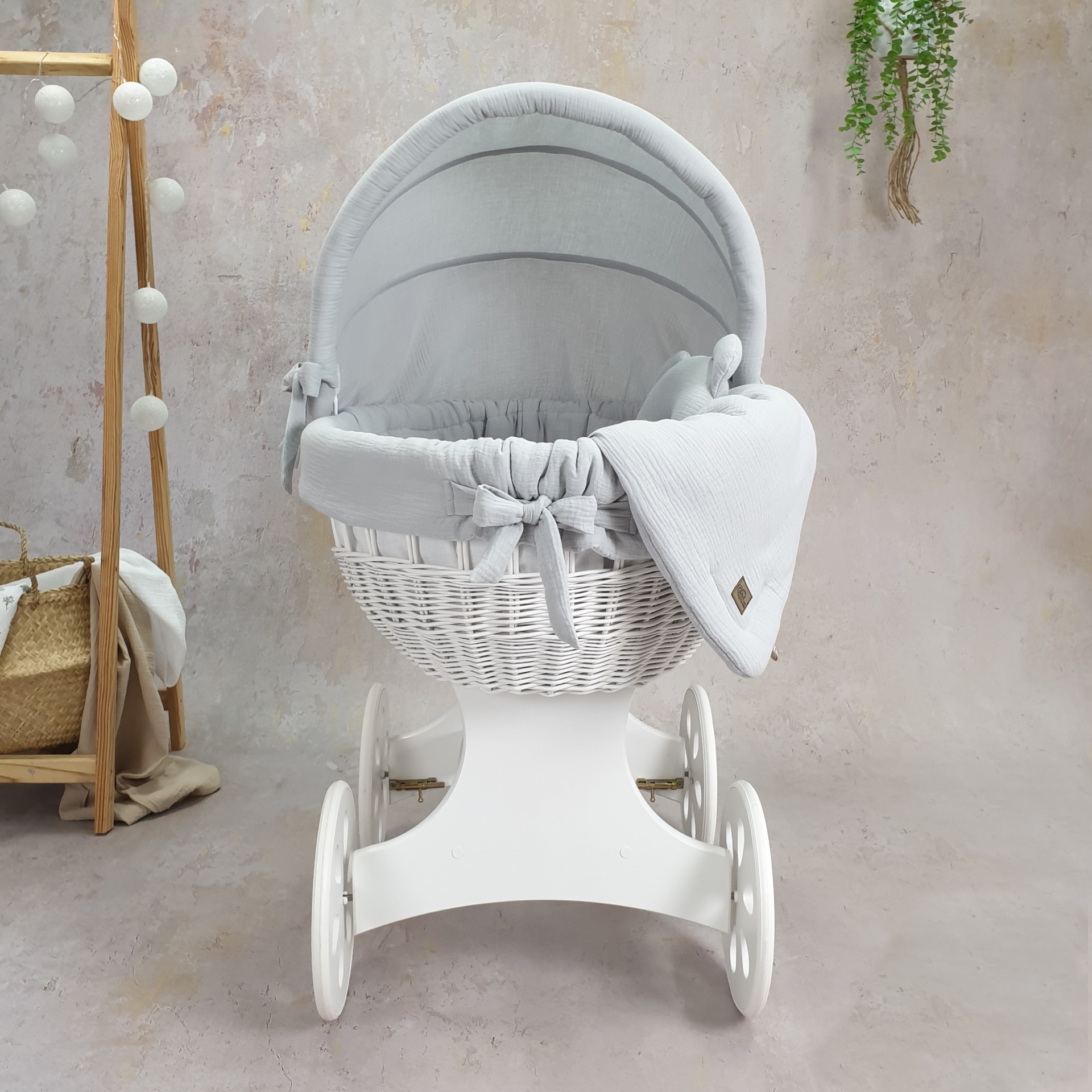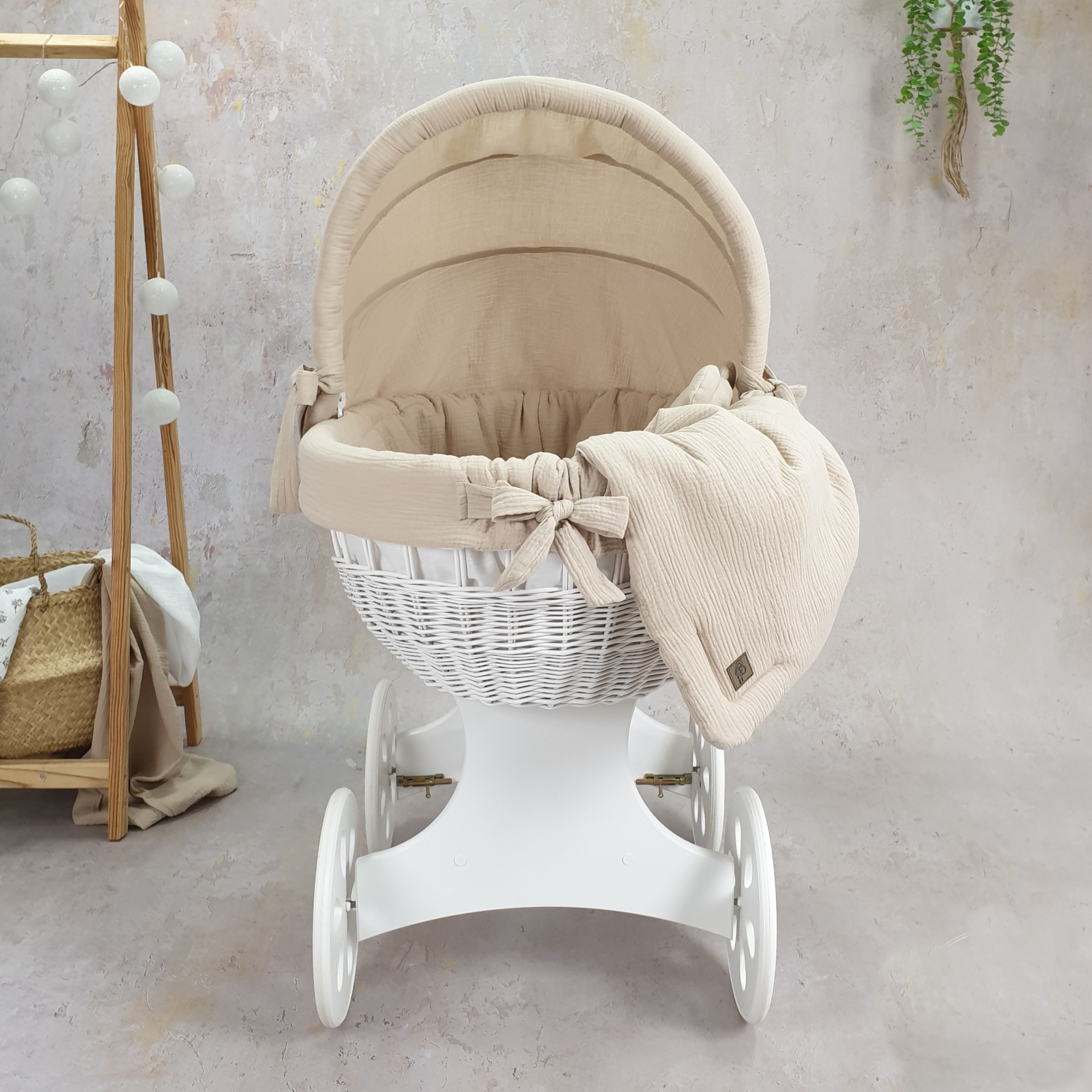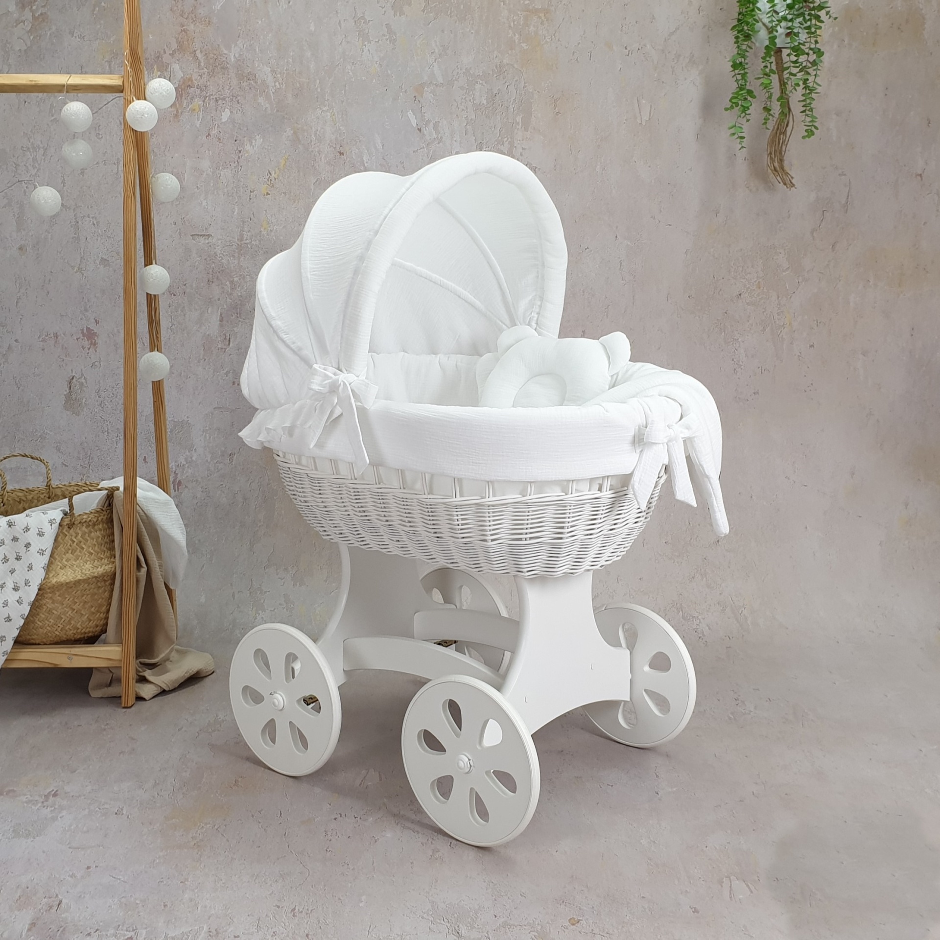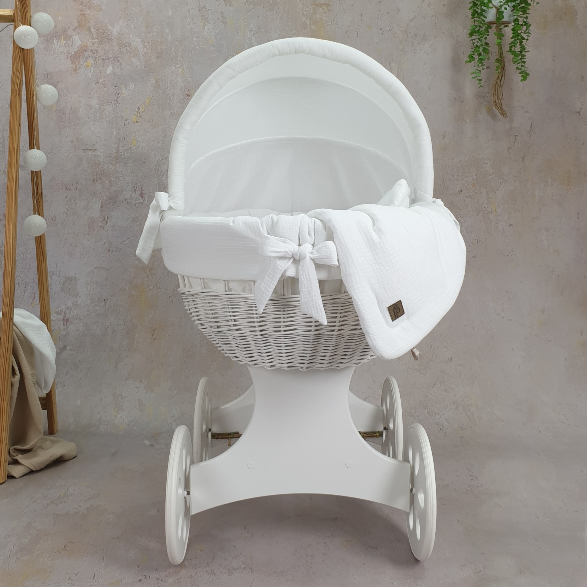 Cesta de Moisés ANNABELL de Vime BRANCO com Roupa de Berço