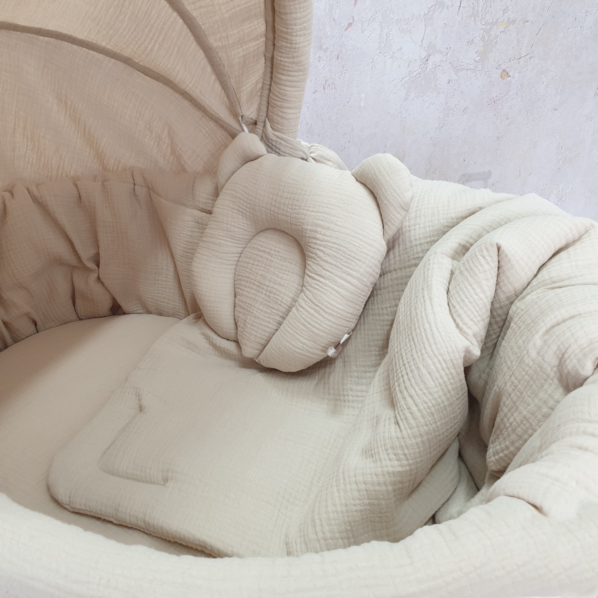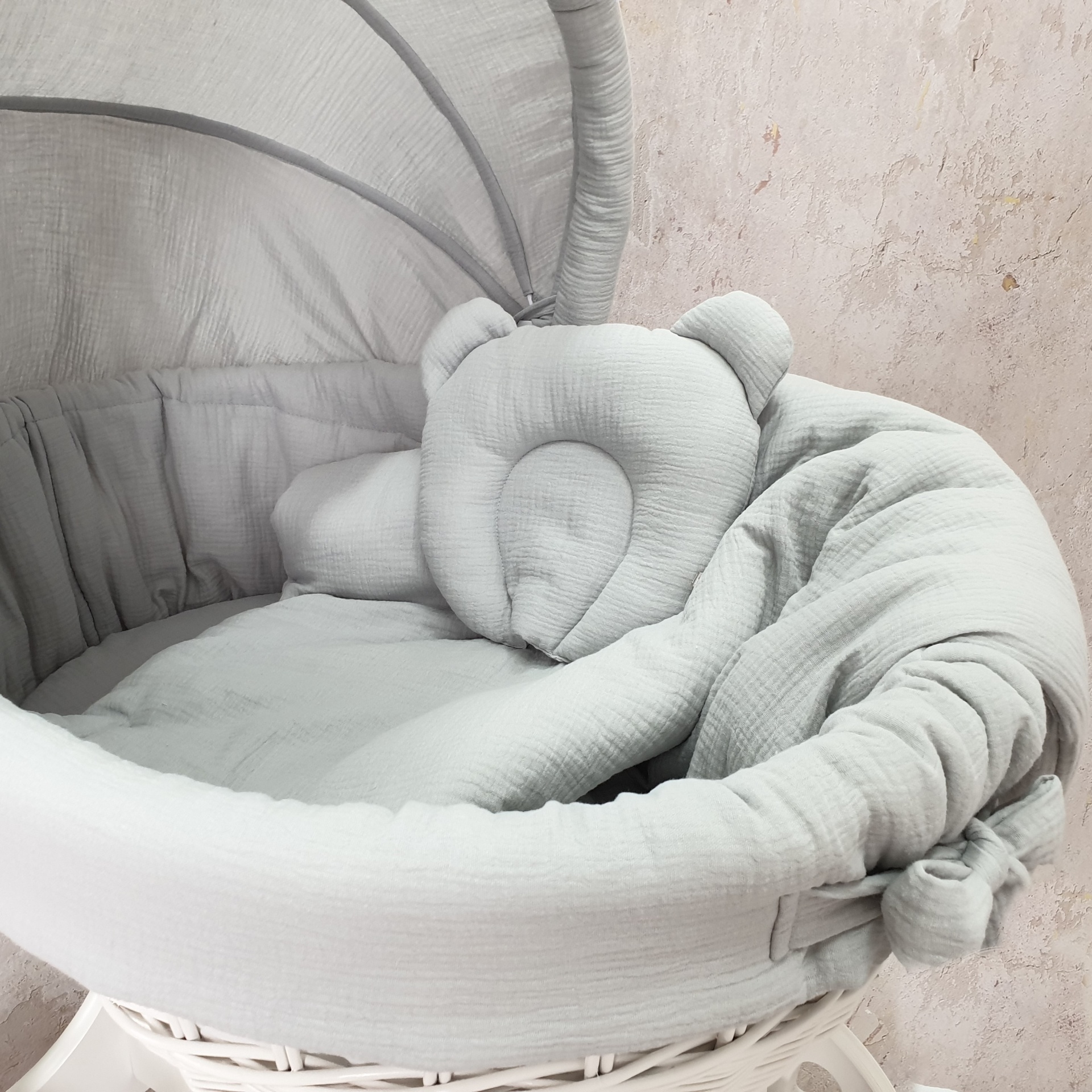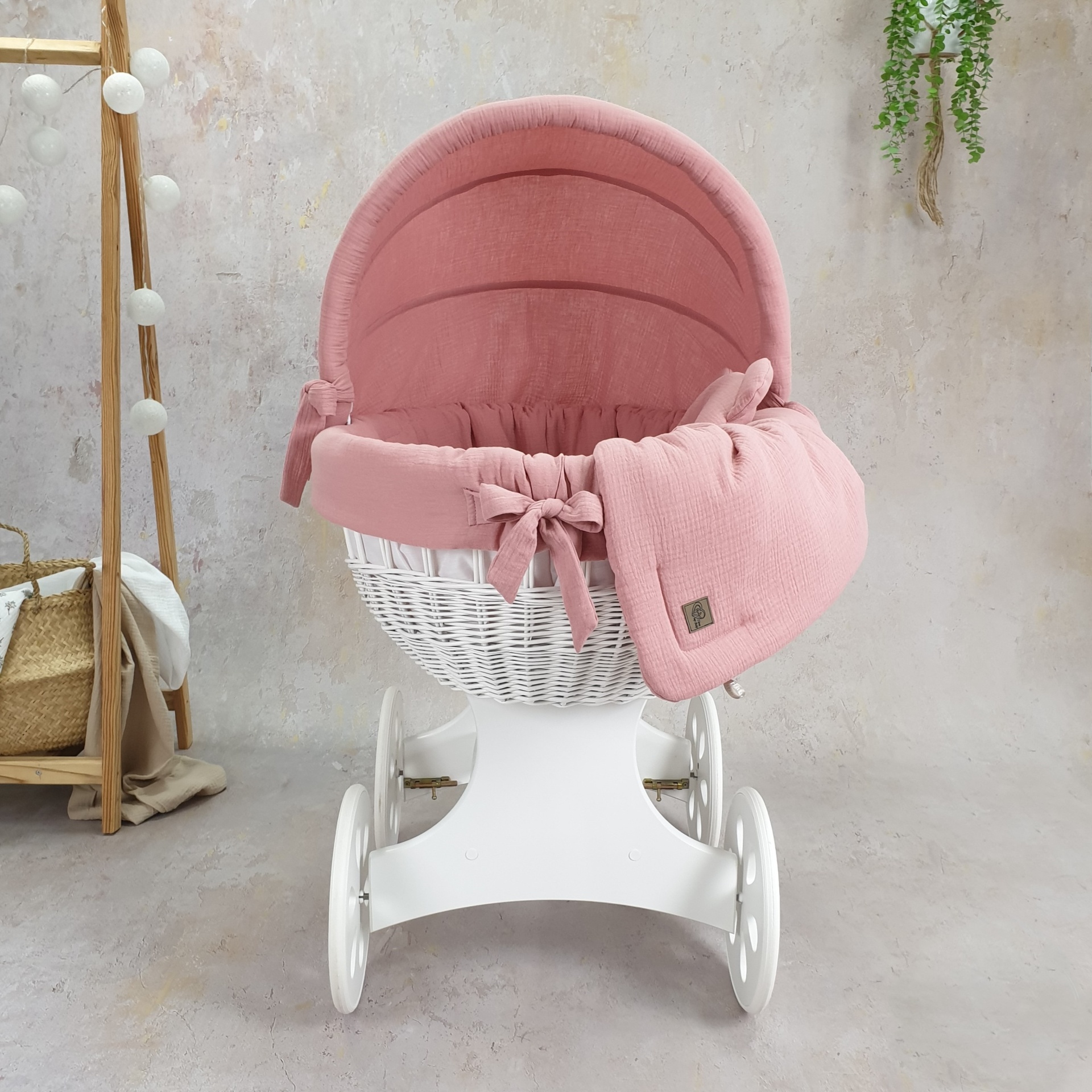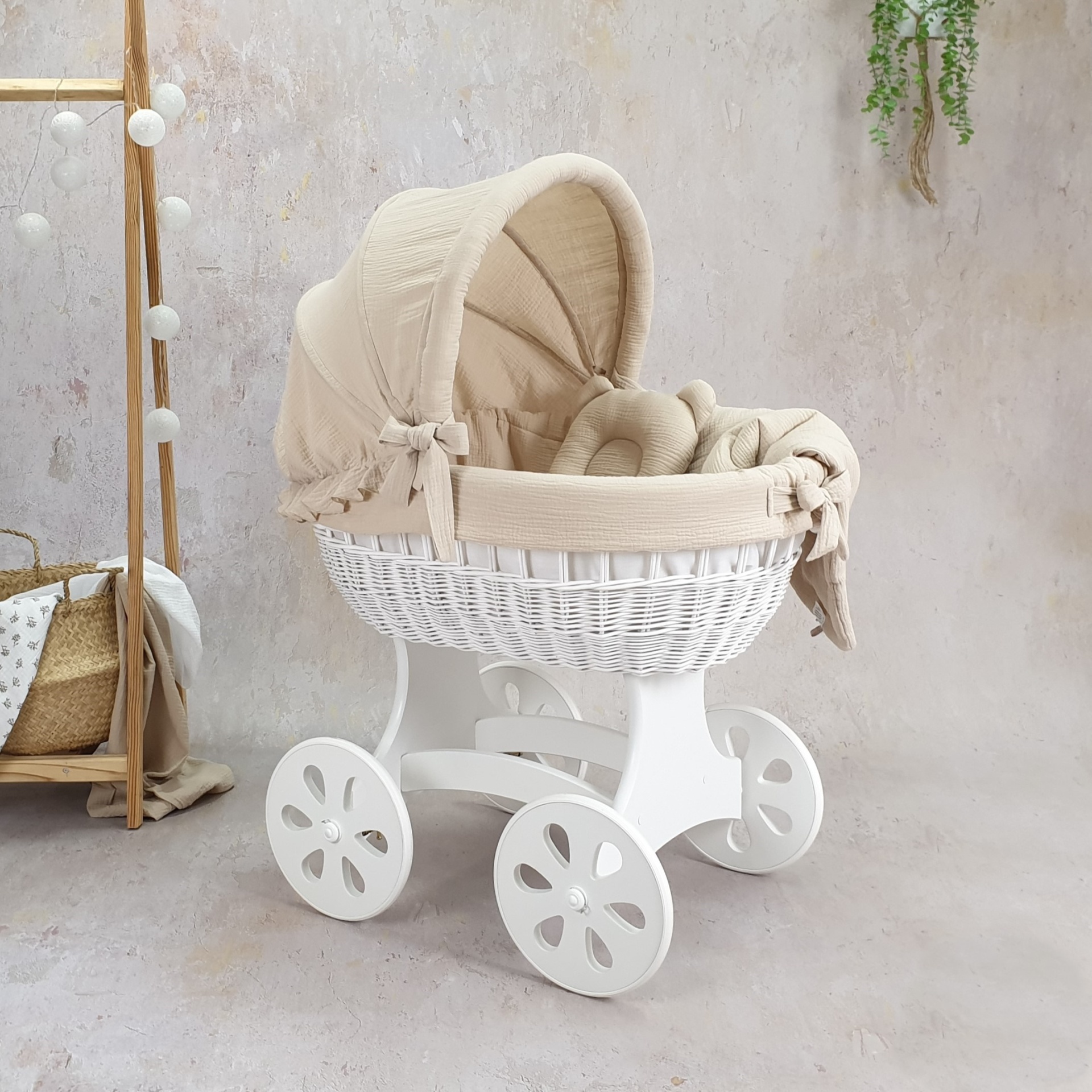 Cesta de Moisés ANNABELL de Vime BRANCO com Roupa de Berço
