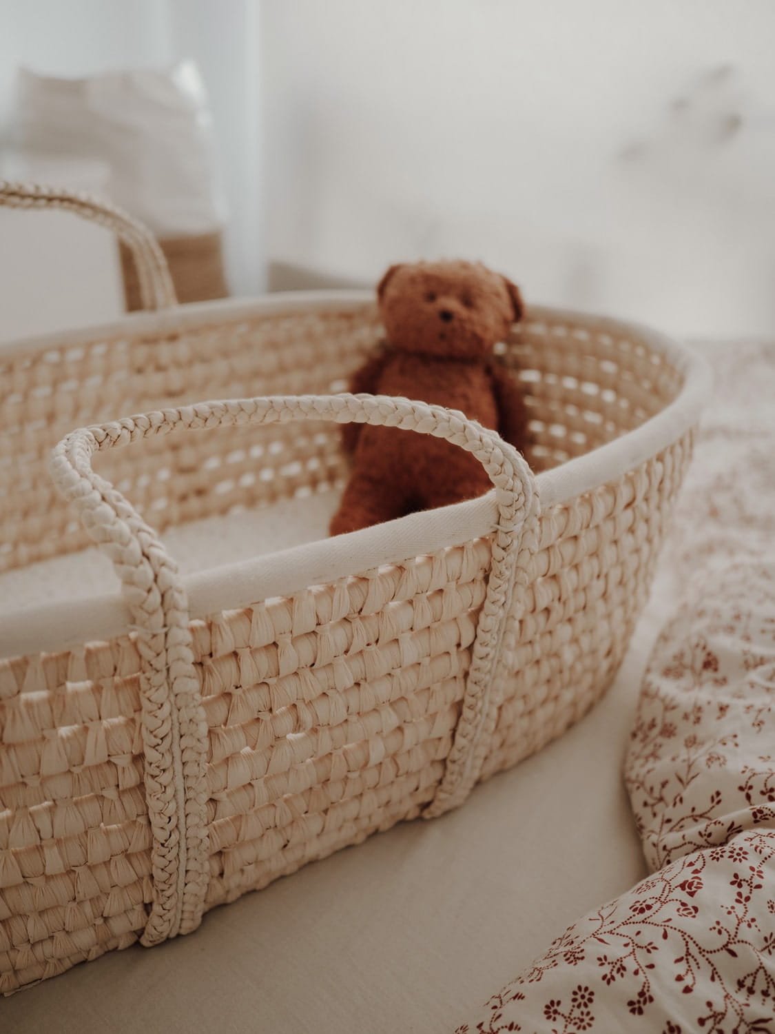 Nos primeiros dias, os recém-nascidos precisam de proximidade, calor e um espaço tranquilo para descansar. A cesta Moisés oferece exatamente isso: um ambiente sereno, natural e protegido, onde o seu bebé pode dormir em paz.