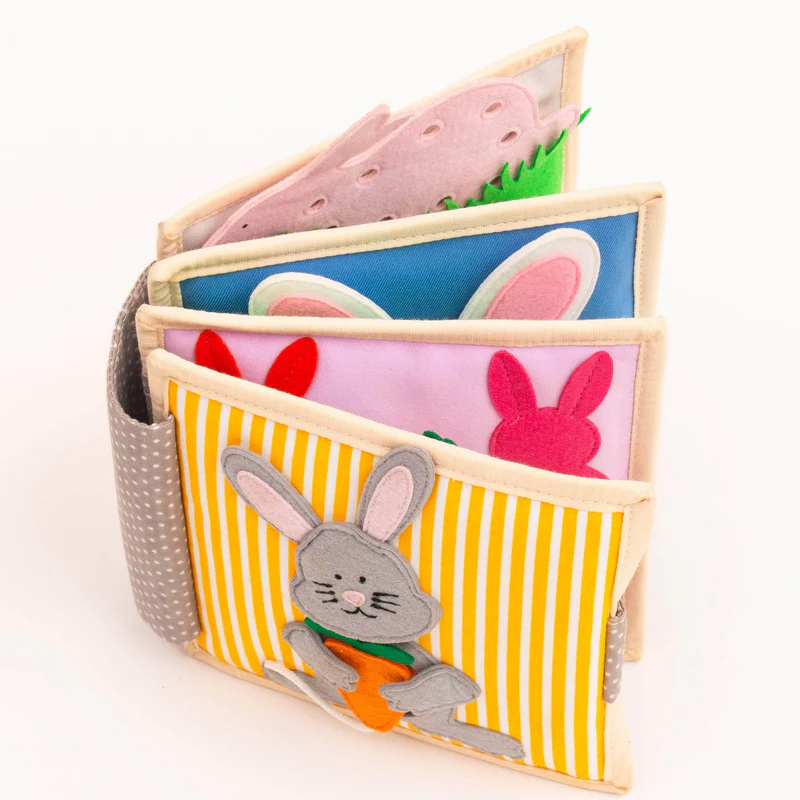 O Mini Livro Sensorial “Coelhinho Engraçado” é um brinquedo educativo e interativo que proporciona aprendizado divertido no quarto das crianças, estimulando imaginação, coordenação motora e habilidades cognitivas.
