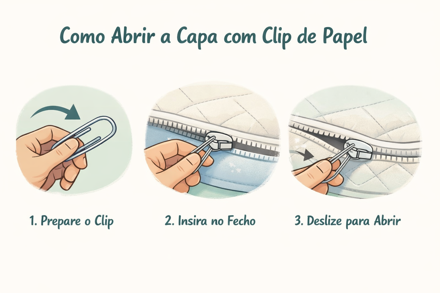 Possui um fecho de correr em 3 lados, facilitando a remoção e a lavagem.