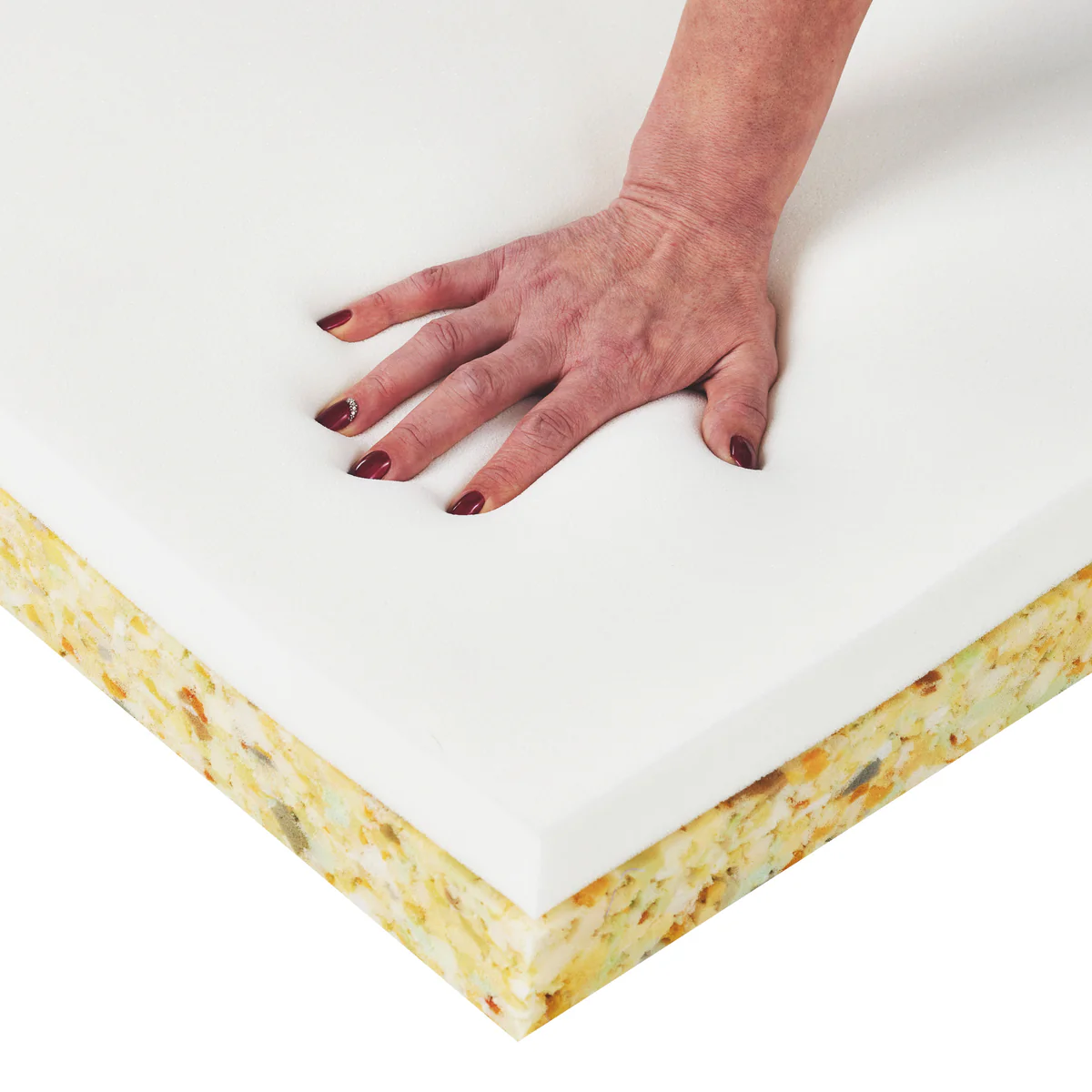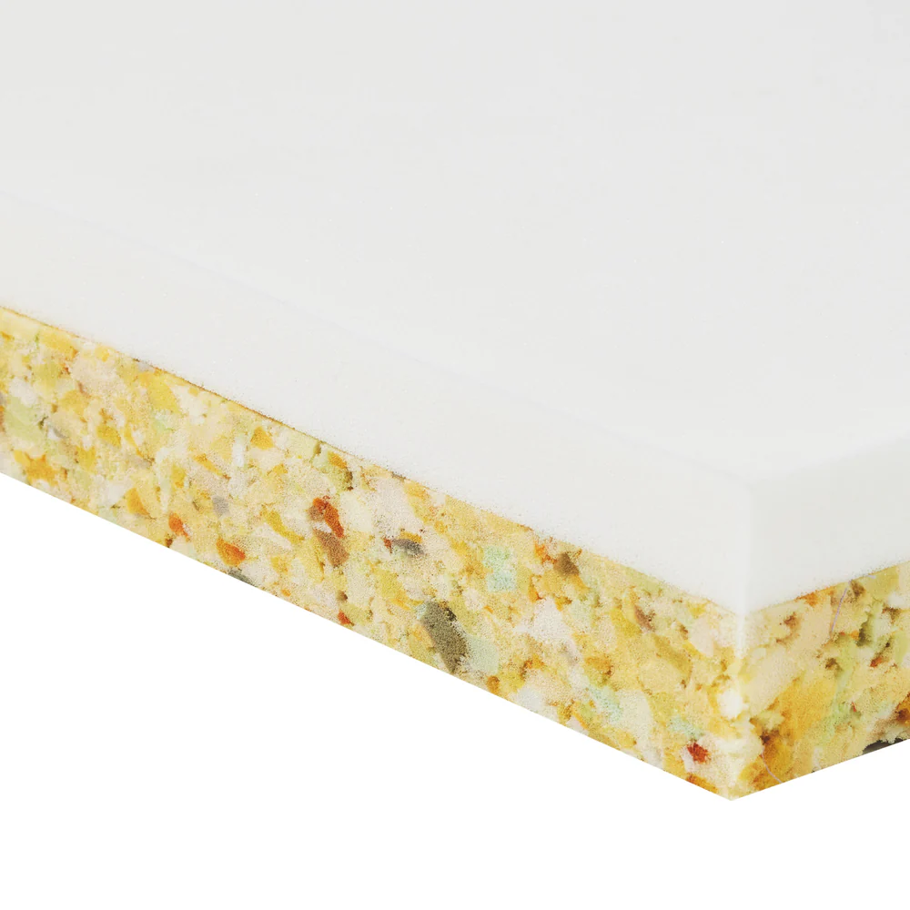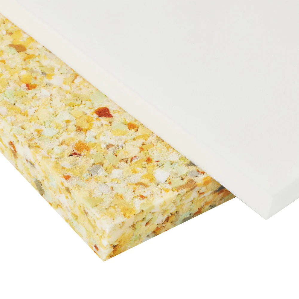 O Colchão ECO Futuro reutiliza colchões descartados, transformando-os em um produto circular e amigo do ambiente. A camada inferior, feita 100% de poliuretano reciclado, oferece flexibilidade, homogeneidade e durabilidade, enquanto contribui significativamente para a redução de resíduos e emissão de CO₂.
