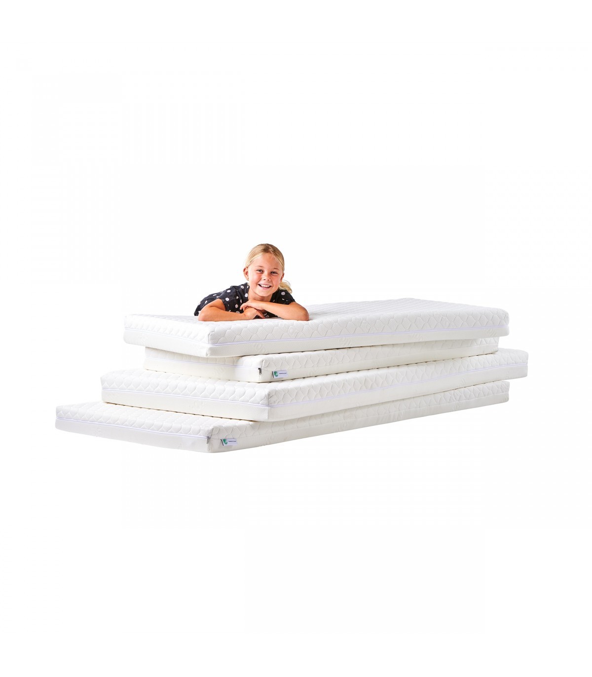 O colchão inclui uma capa removível e lavável a 60ºC, feita com suaves fibras de bambu, com termomoldagem incorporada para remover o excesso de calor e humidade do corpo da criança. O fecho de correr em 3 lados permite encaixe rápido e prático, facilitando a manutenção e higiene do colchão.
