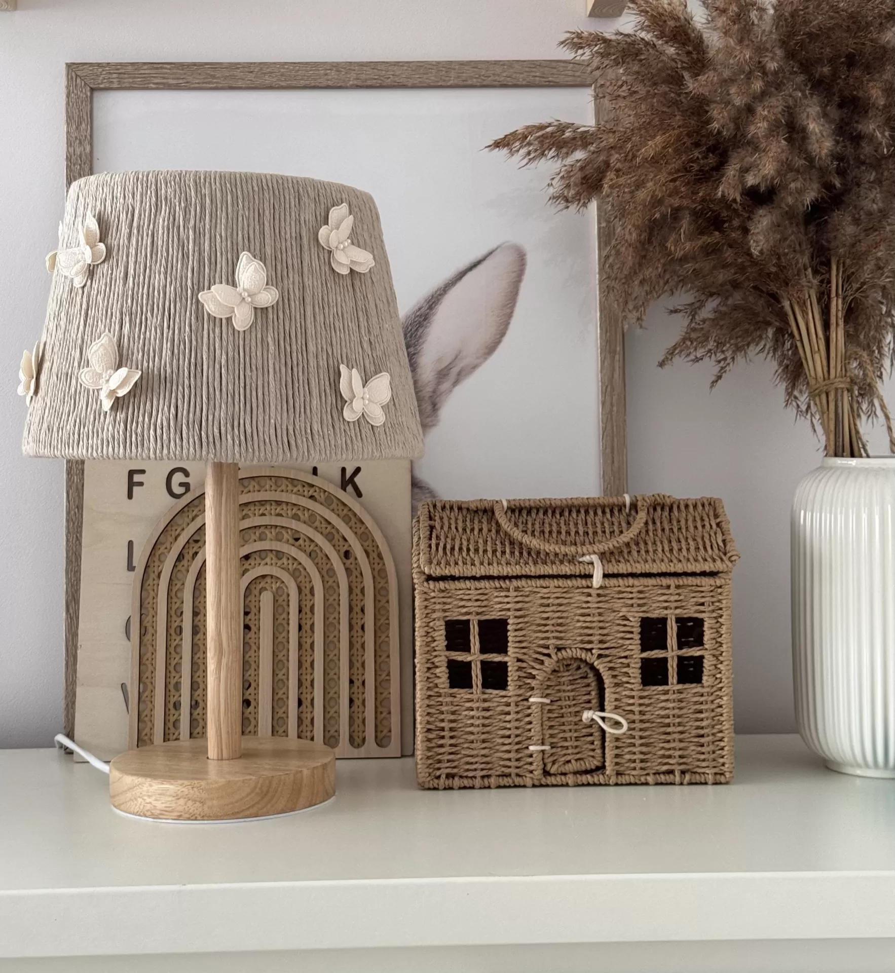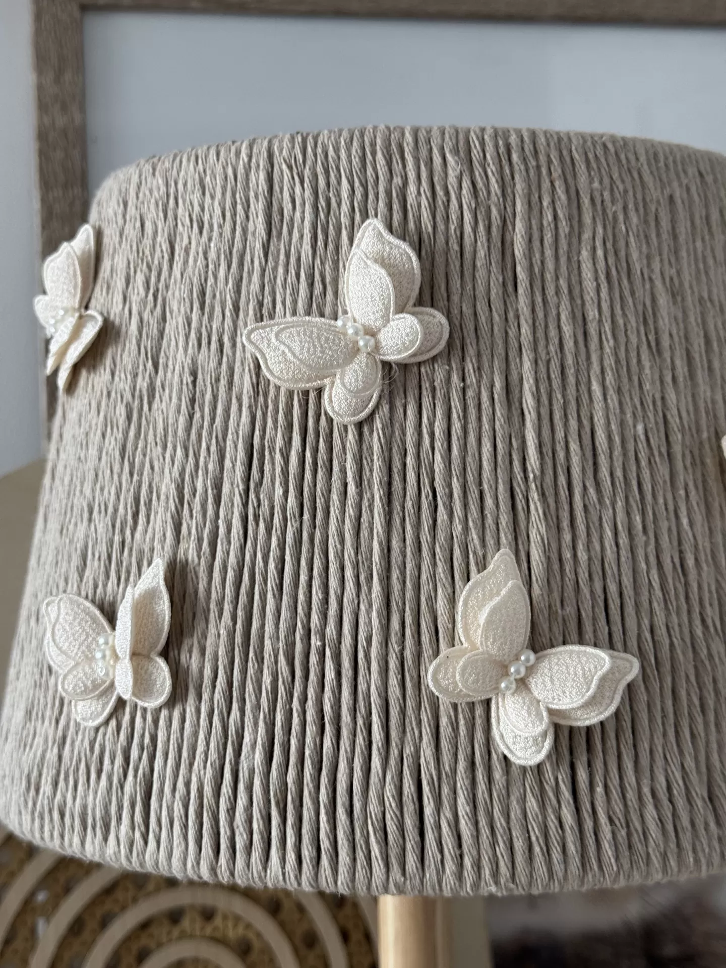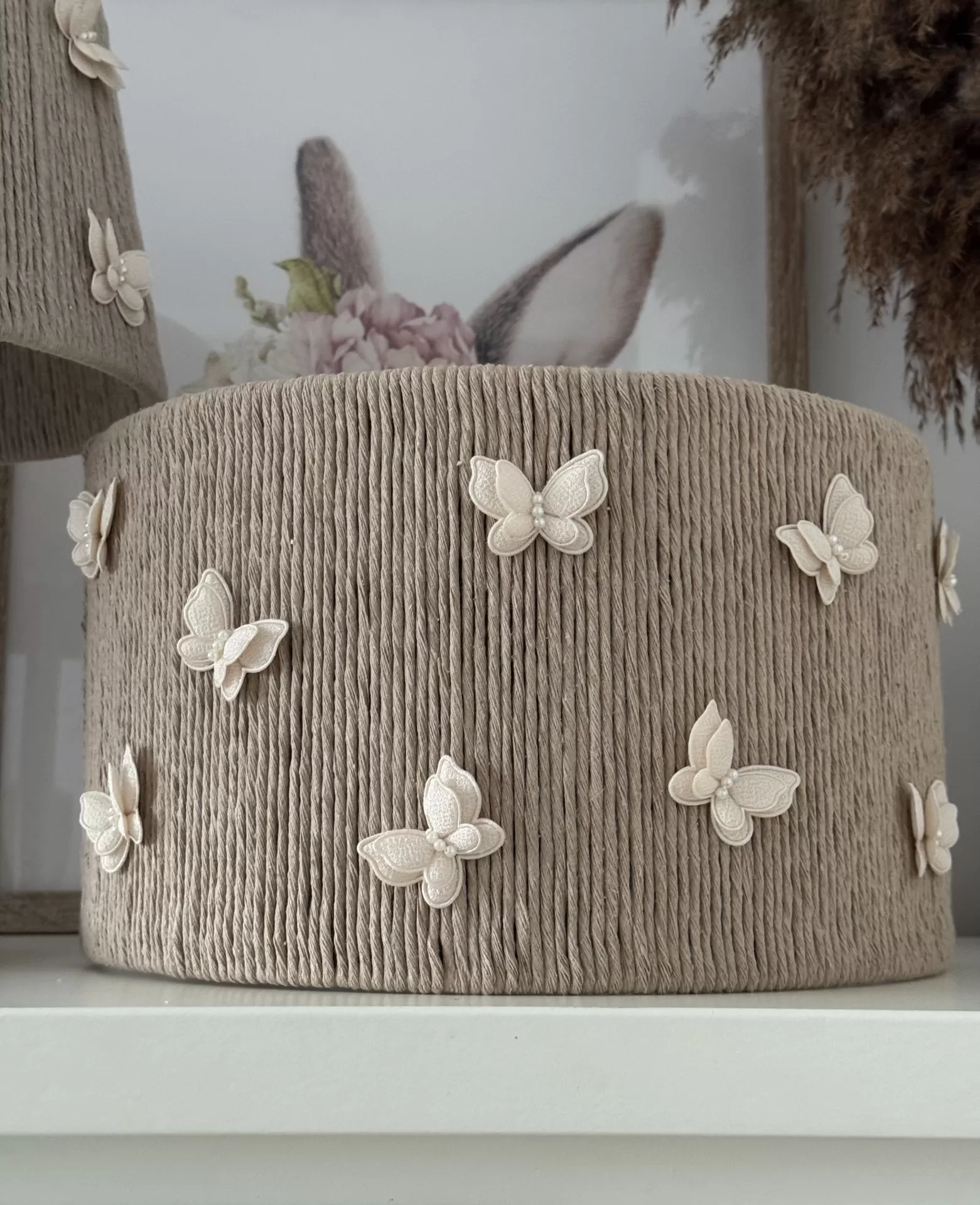 Feitos à mão em macramé de algodão natural, com delicadas borboletas em bege, oferecem luz suave para noites tranquilas e um charme boho encantador durante o dia.