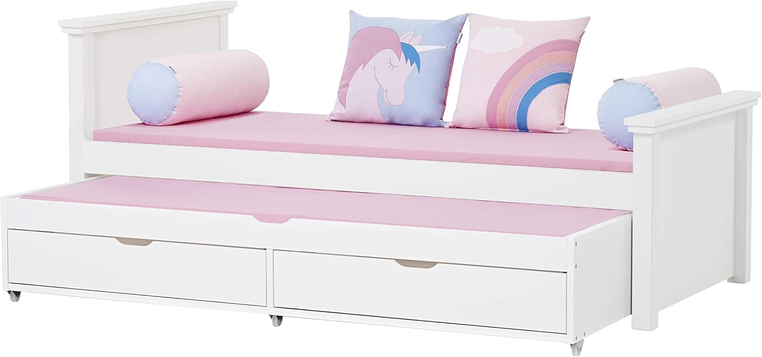 As almofadas incluem capa em algodão macio e enchimento em espuma confortável, garantindo suavidade, durabilidade e segurança para os mais pequenos.