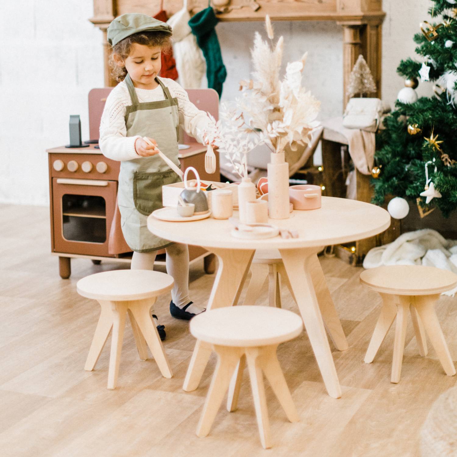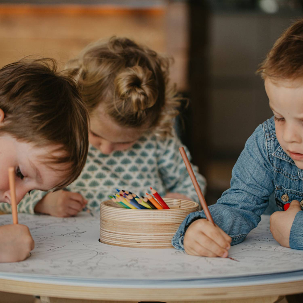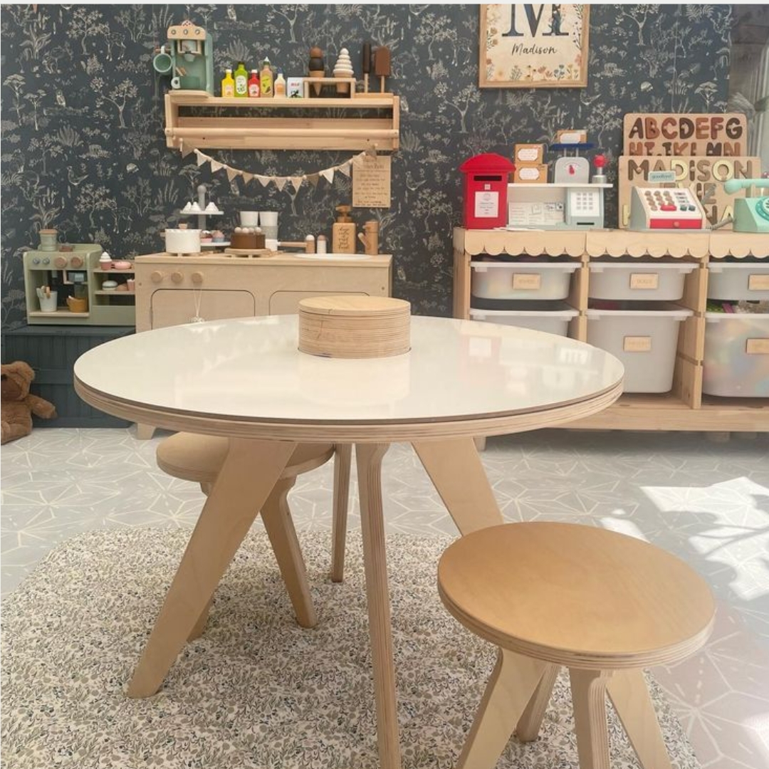 Mais do que uma simples mesa, esta é uma verdadeira estação de brincadeiras, desenho e descobertas, tudo com um design escandinavo minimalista, feito em madeira natural de bétula e 100% produzido na Europa.