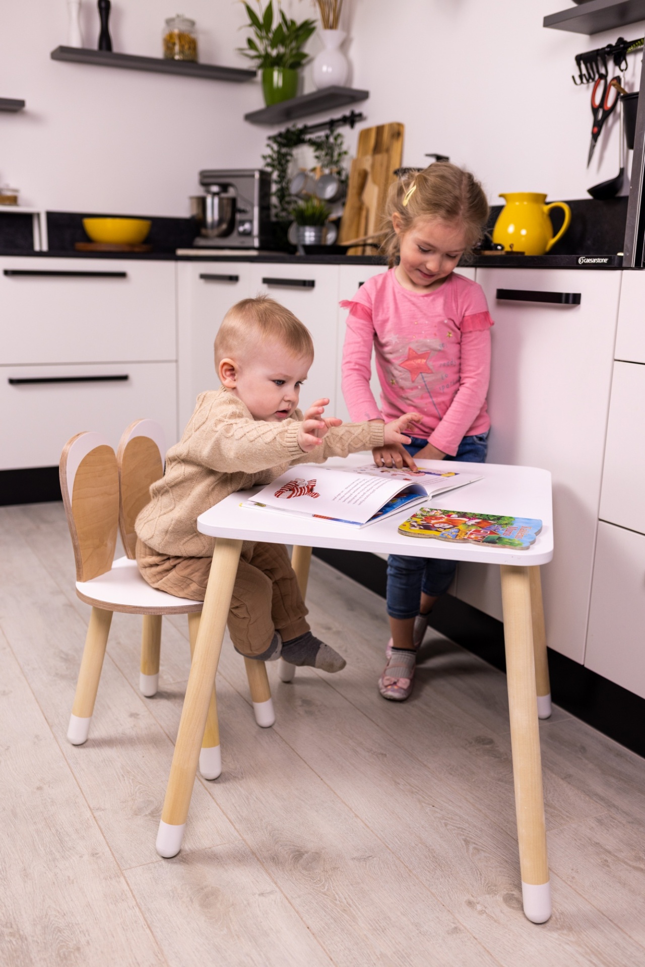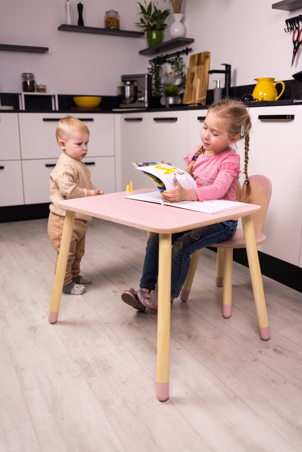 Transforme o espaço do seu pequeno com o delicado e funcional Conjunto Mesa e Cadeira Coelho, criado para inspirar momentos de criatividade e diversão todos os dias.