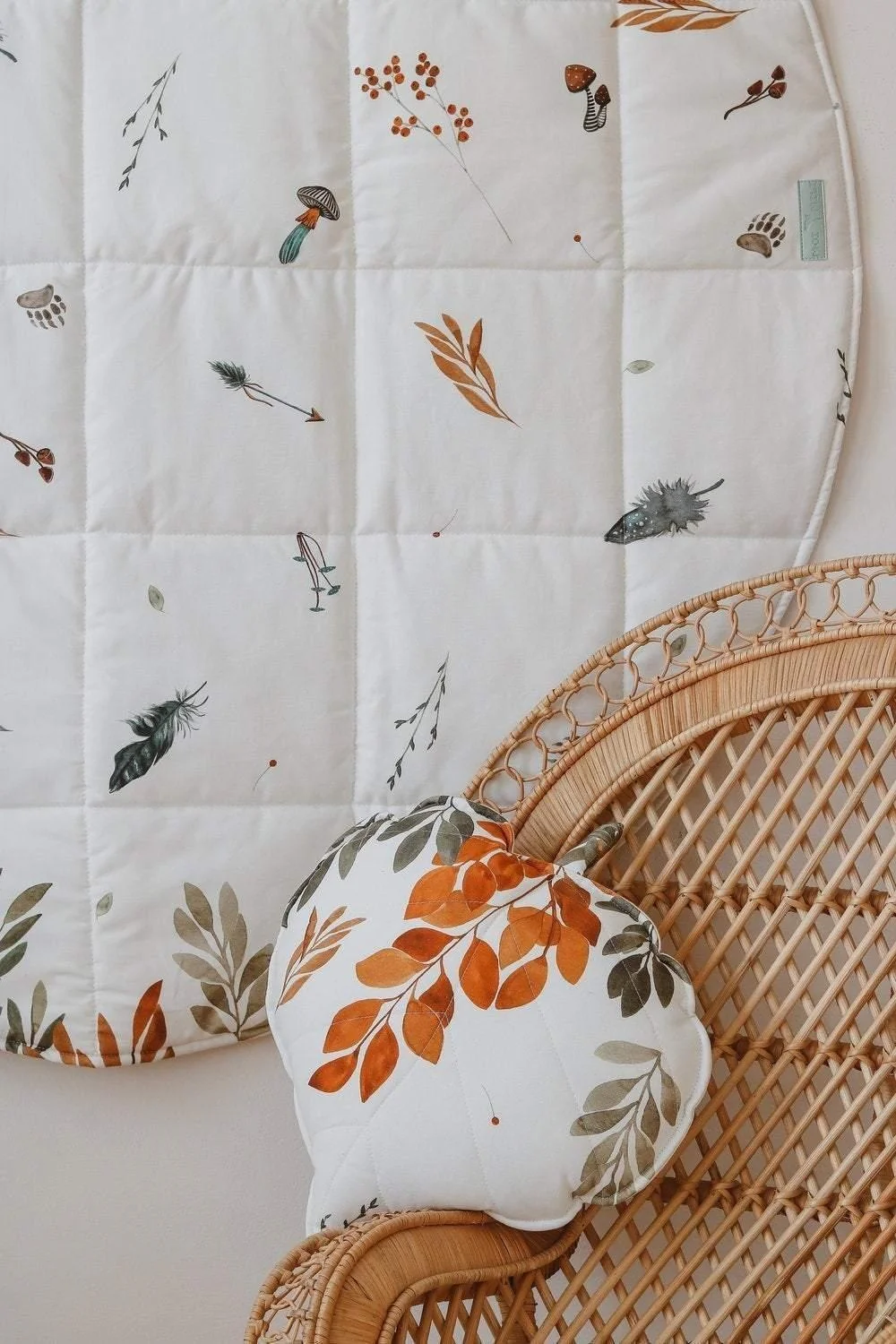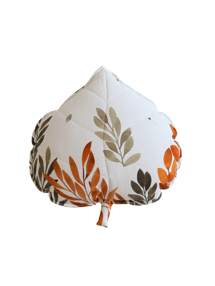 A almofada que acompanha o conjunto é em forma de folha de algodão, trazendo ainda mais poesia e conexão com a natureza para o ambiente infantil. Macia, antialérgica e lavável, ela é perfeita para sonecas, leituras tranquilas ou como um acessório decorativo cheio de charme.