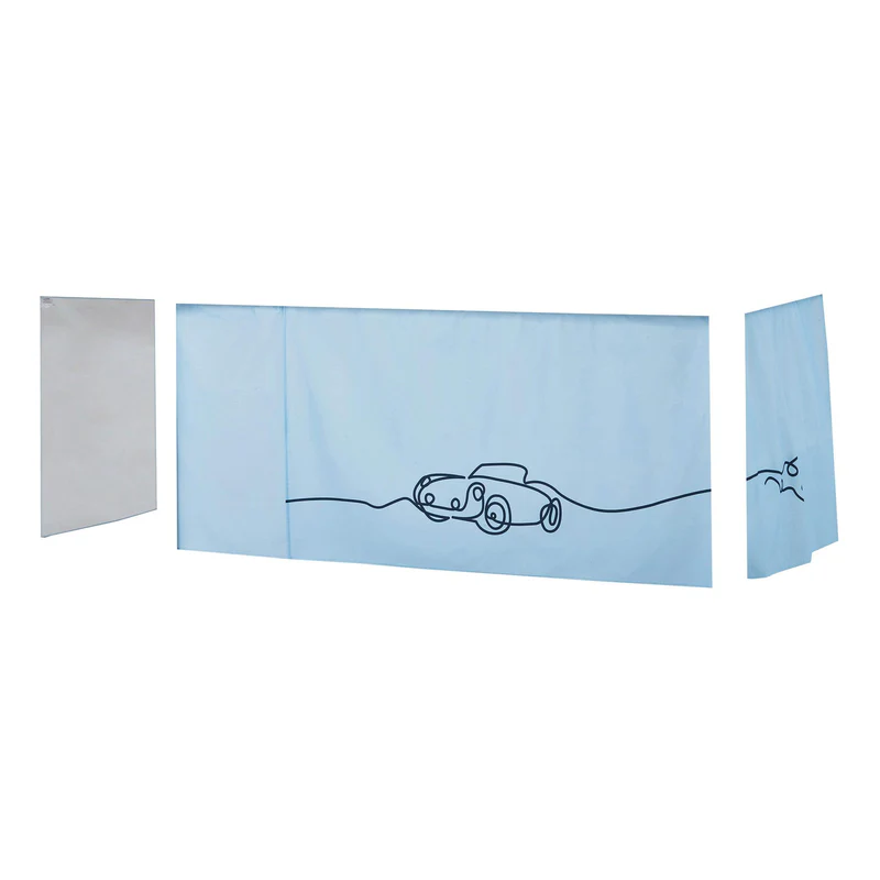 Acelere ao máximo com a Cortina de Cama Eco Dream – Carros, feita à mão com atenção aos detalhes. Com um design gráfico em tons de azul e desenhos a linha única, esta cortina transforma qualquer cama numa verdadeira box de piloto de corridas, perfeita para brincar ou criar um espaço acolhedor e imaginativo.