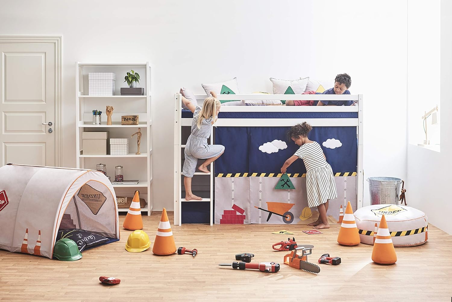 Quando montada na cama elevada, deixa de ser apenas um lugar para dormir e torna-se um espaço de imaginação ilimitada: a cama pode ser uma máquina do tempo, um castelo de contos ou exatamente aquilo que a criança imaginar.