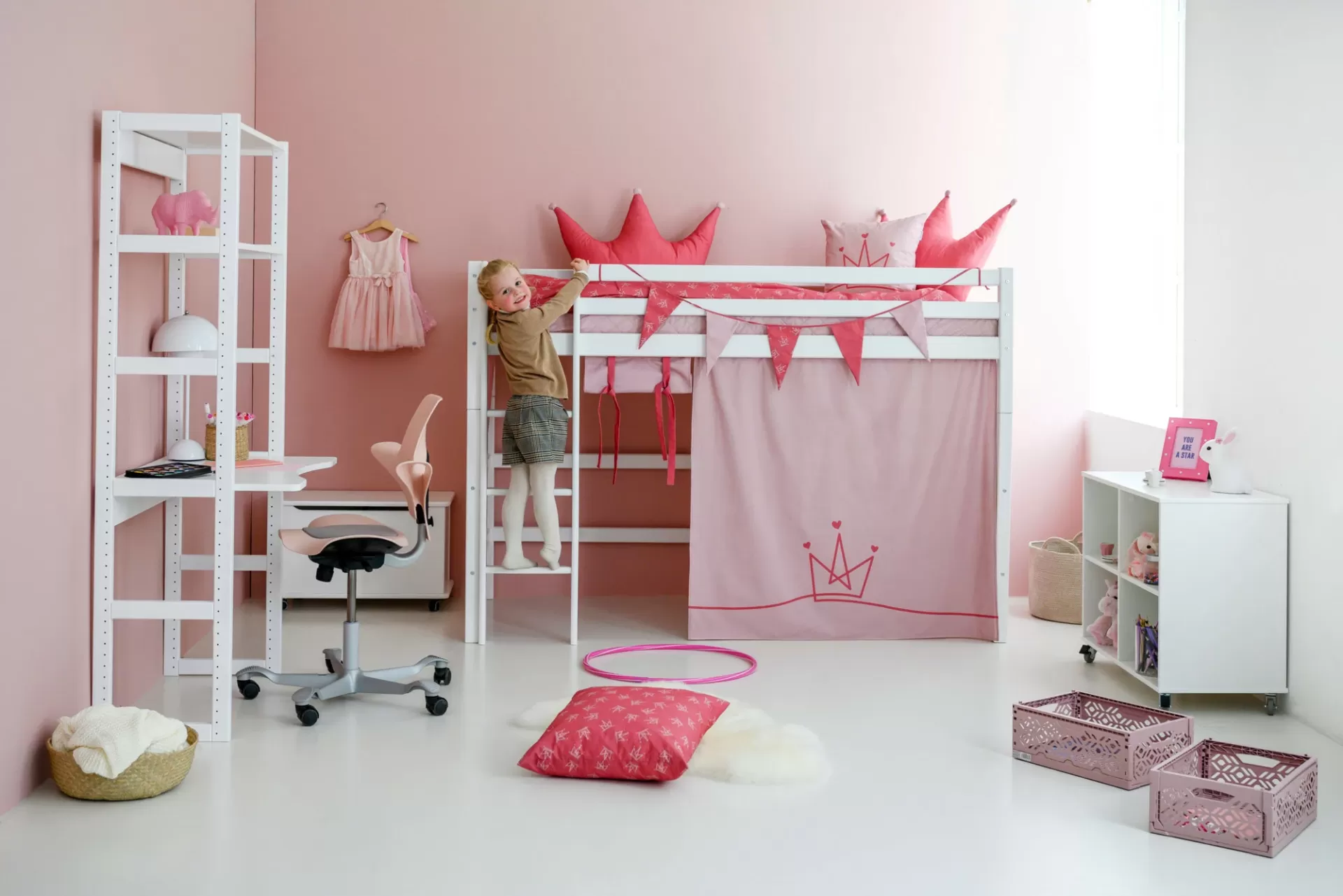 Ao ser instalada, a cama deixa de ser apenas um local de descanso e passa a ser um espaço de brincadeira, desenvolvimento criativo e conforto emocional. A zona inferior transforma-se numa cabana aconchegante, perfeita para momentos de leitura, relaxamento ou brincadeira. Pode ainda personalizar este espaço com colchões, tapetes e almofadas para criar um verdadeiro refúgio infantil.