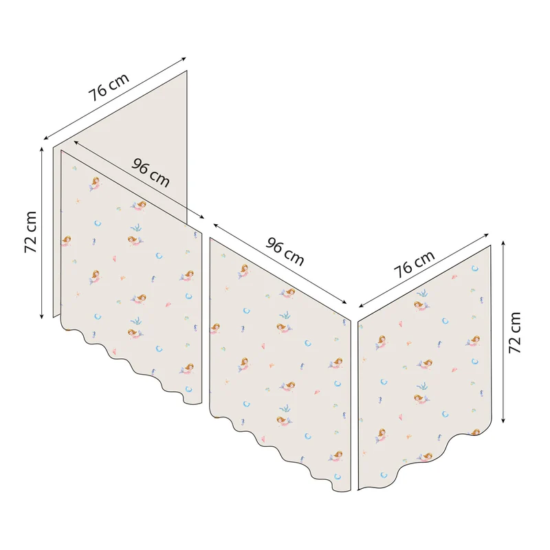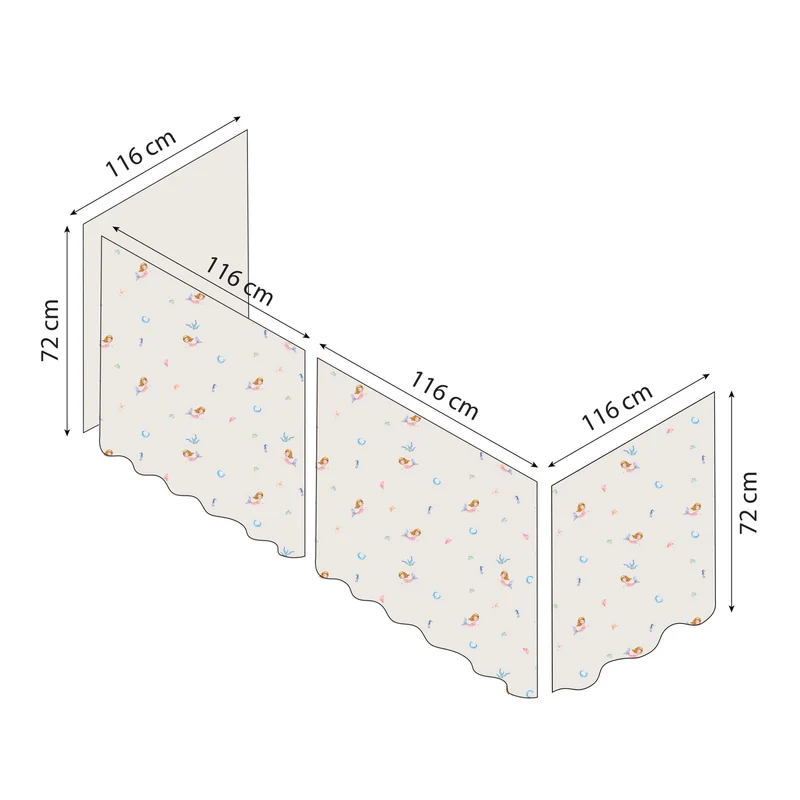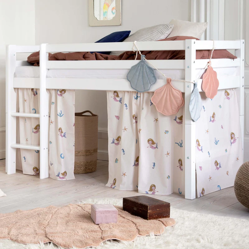 O universo das Sereias convidam os seus filhos a mergulhar num mundo emocionante cheio das mais doces sereias e das mais belas conchas. Além disso, a cortina cria uma aconchegante caverna debaixo da cama, perfeita para brincar, ler ou desfrutar de uma pequena pausa do resto do mundo. Pode decorar esta caverna com colchões, tapetes, almofadas, cordões de luz e outros acessórios confortáveis para criar um ambiente ainda mais mágico.