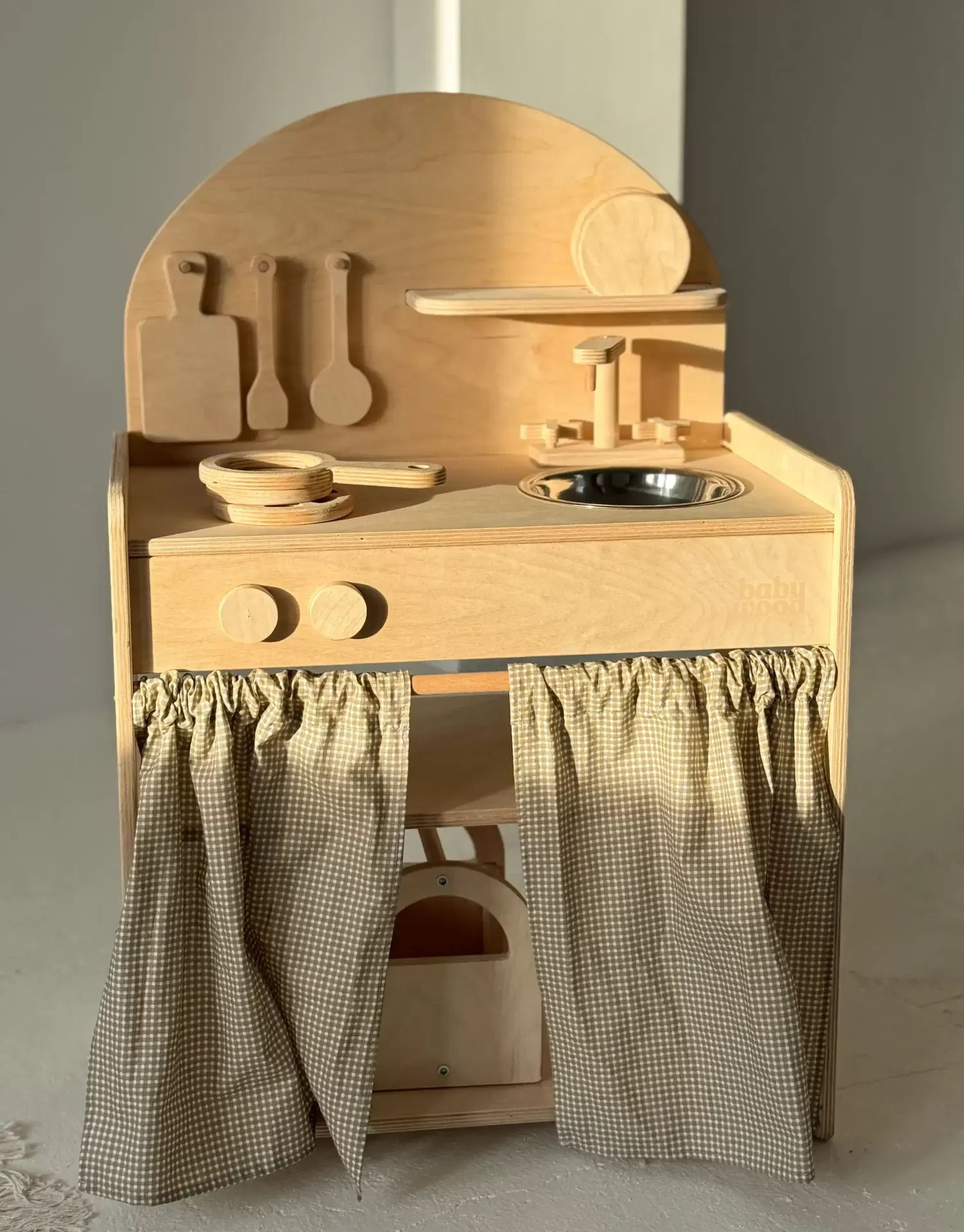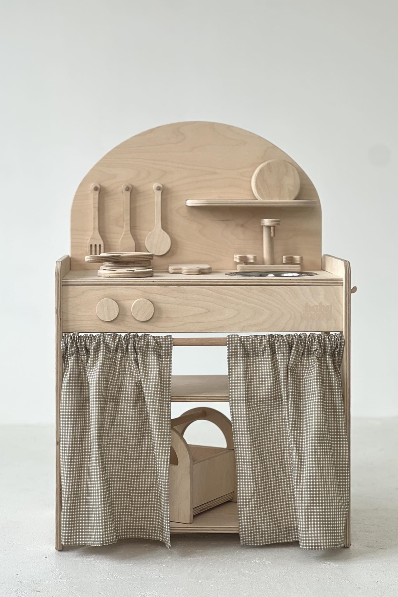 A cozinha infantil de madeira não é apenas um brinquedo, mas uma verdadeira fonte de diversão, risadas e aprendizagem. Inspirada no coração da casa, permite que as crianças criem momentos inesquecíveis com amigos, familiares e as suas bonecas favoritas.