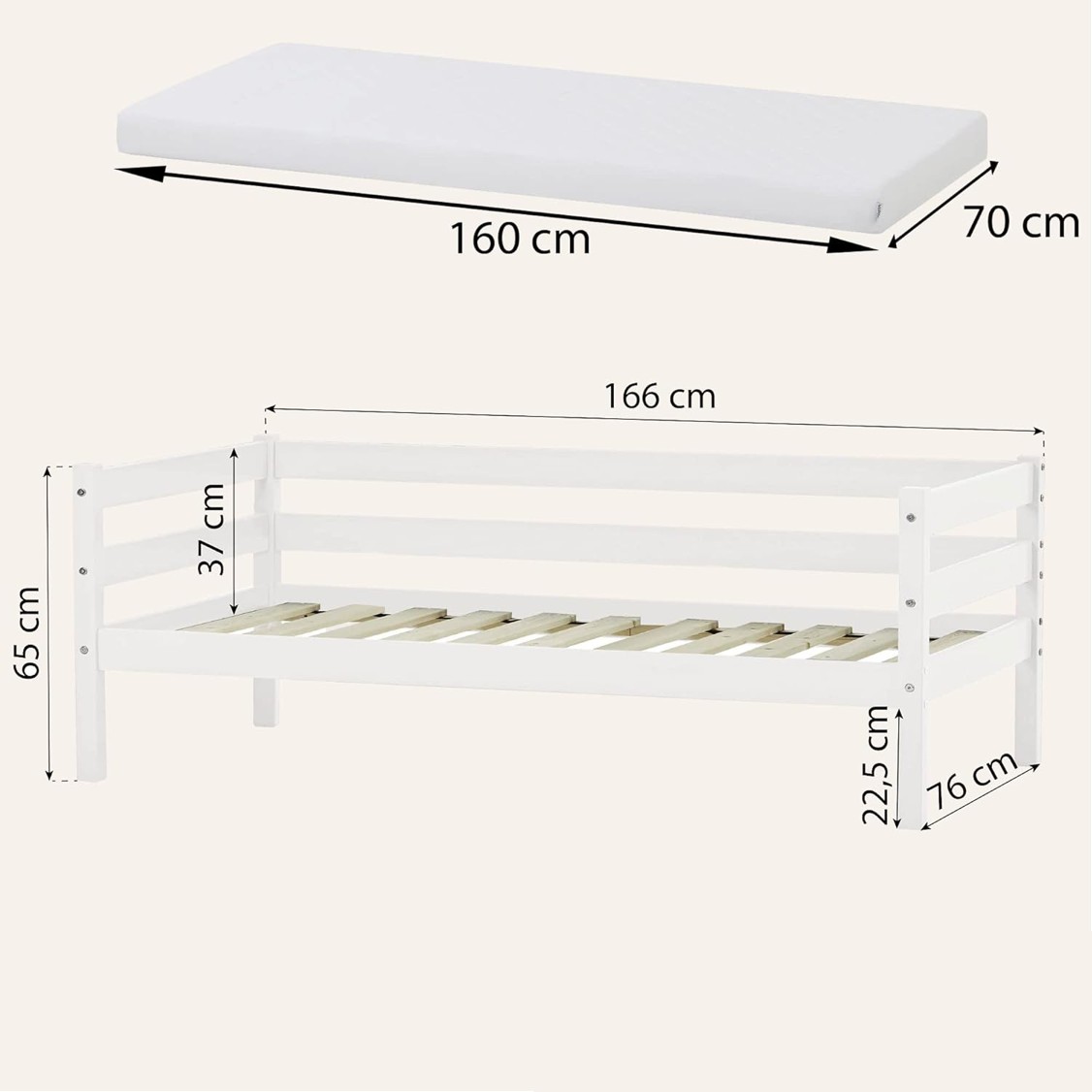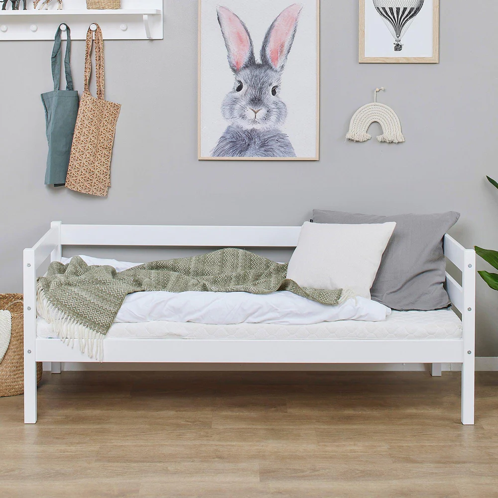 Disponível em branco ou madeira natural, a cama combina segurança, durabilidade e estilo escandinavo, tornando-se perfeita para qualquer quarto infantil.