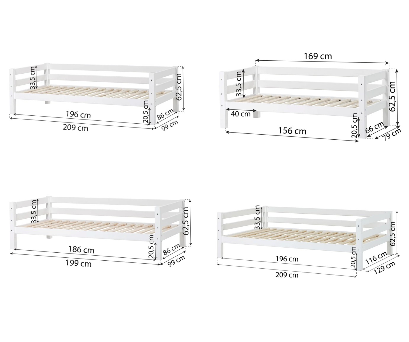 A ECO Luxury Cama Infantil Branca é a base perfeita para uma cama de criança grande, combinando design clássico, funcionalidade e sustentabilidade. Pode ser usada sozinha como cama de dia ou sofá infantil, ou integrada com módulos inteligentes, criando soluções como cama meia-altura, camas com escorregador, beliche ou cama alta.